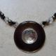 Collier de perles sur cable, pendentif rond strass et fermoir mousqueton.