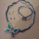 Superbe parrure papillon bleu, 3 pièces. Vendu pour un mariage. Collier en cordon bleu et cable avec pendentif papillon, bracelet assorti, et boucles d'oreilles pendantes avec gouttes en cristal de swarovski. Fermoir clous.