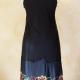 Robe en voile lycra noir, avec la bas en dentelle brodée et pailletée multicolore. Emmanchure et décolleté finition frou-frou. Doublure noire. Prix : 75€.