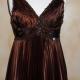 Trés belle robe de cocktail plissée, décolleté et bretelles brodées de perles. Vue de dos.