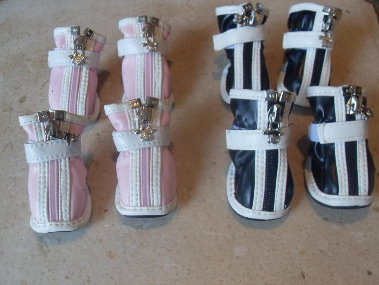 Chaussures Chaussons chien chiot imitation cuir scratch Rose noir semelle.
