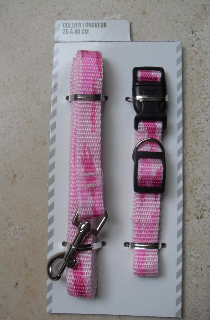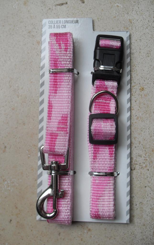 Collier + laisse rose, chien, chiot, chat.