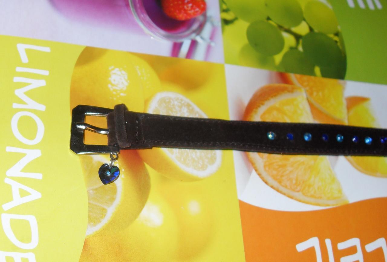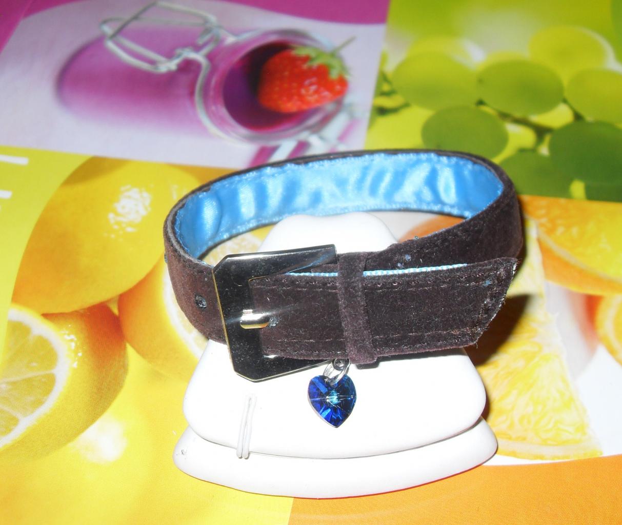 Collier marron doublé satin turquoise avec des strass bleu et son coeur en cristal de swarovski. NEUF