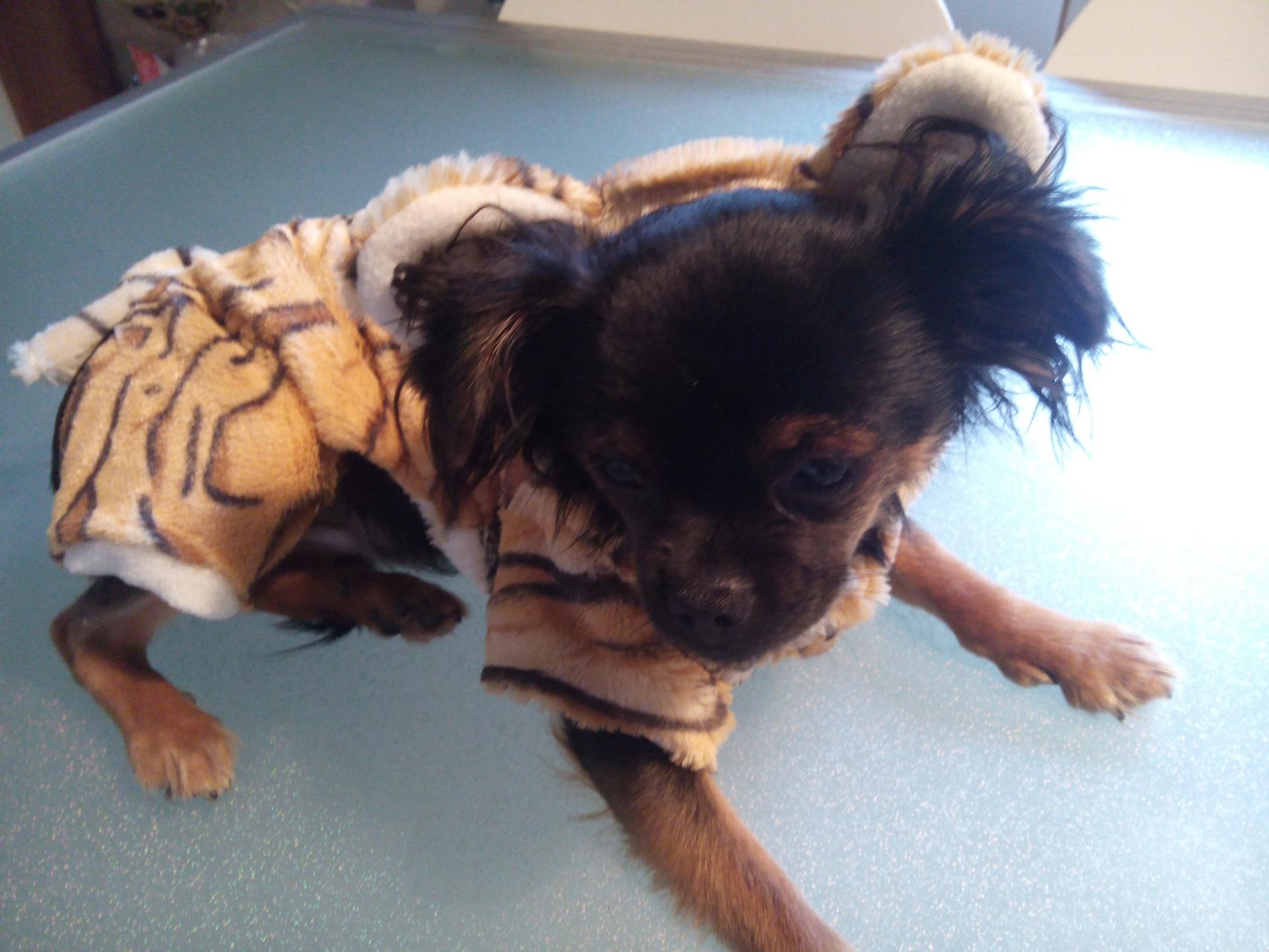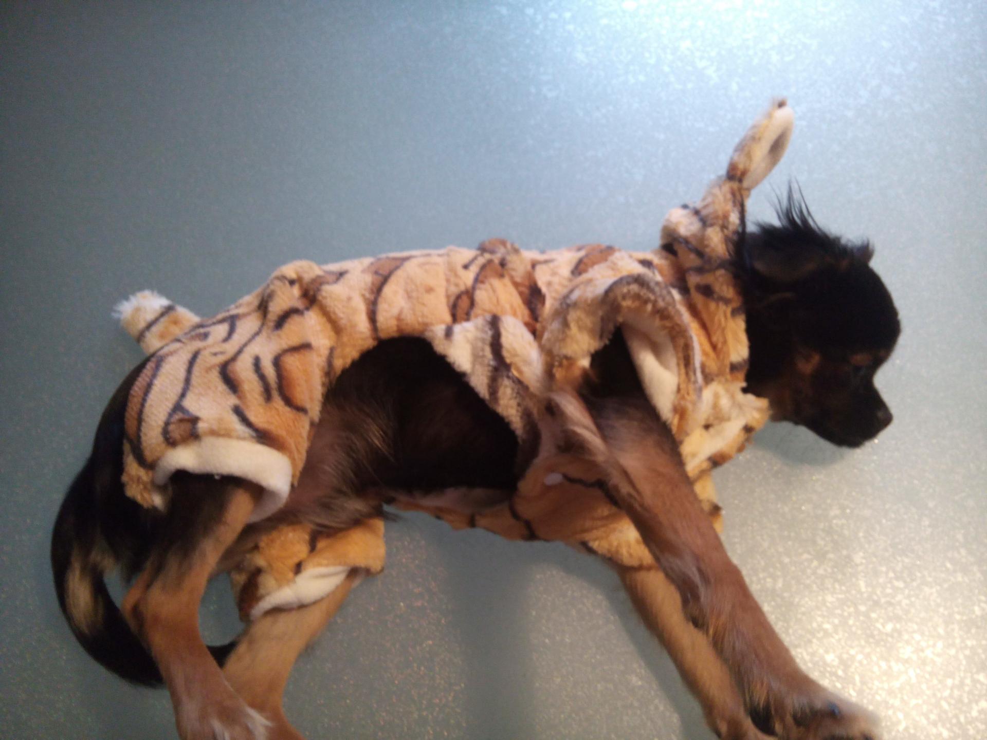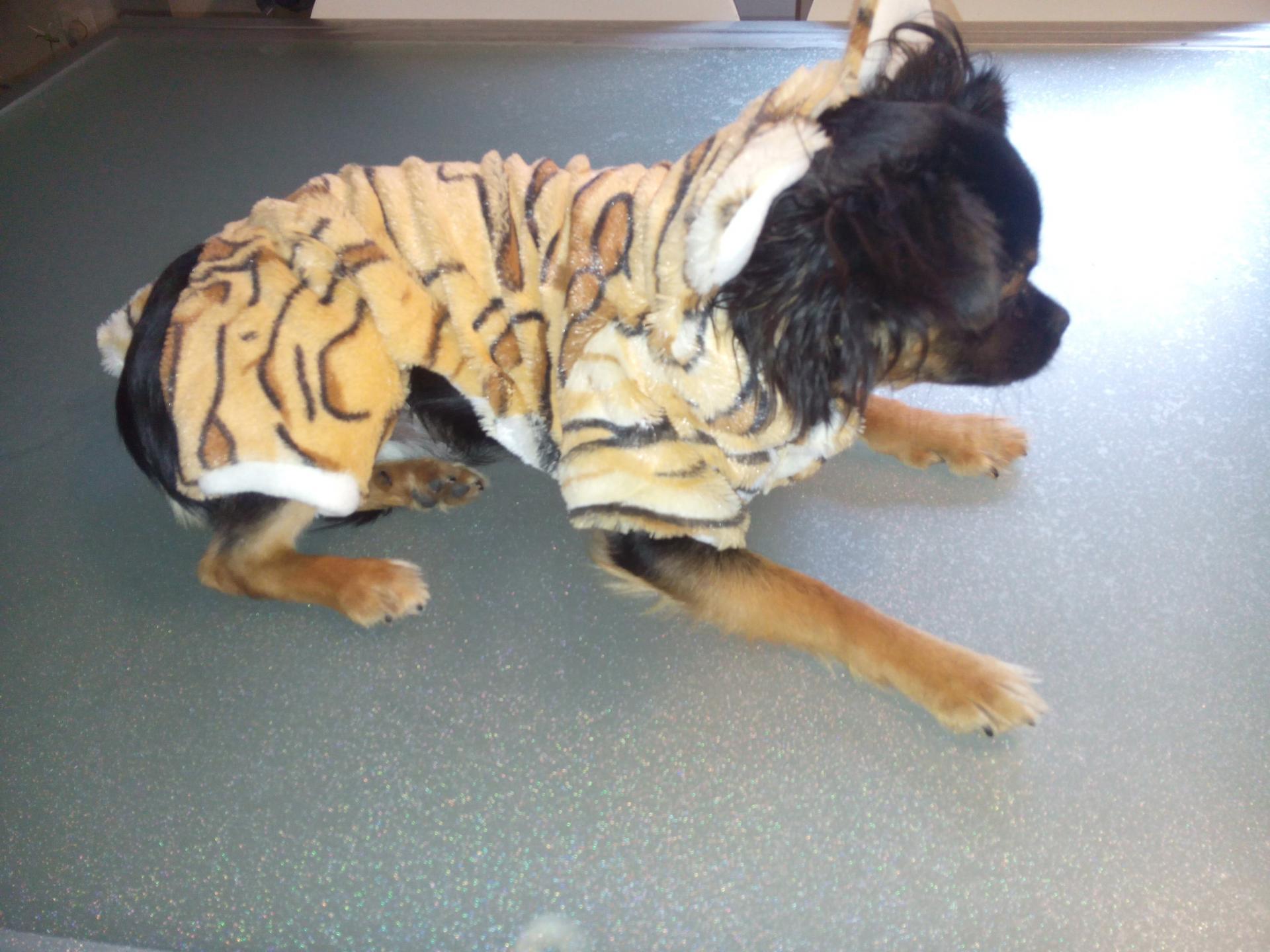 toy vêtement chien beige marron blanc capuche tigre chihuahua; yorkshire pantalon jack russel animaux. chiot manteau polaire blouson combinaison