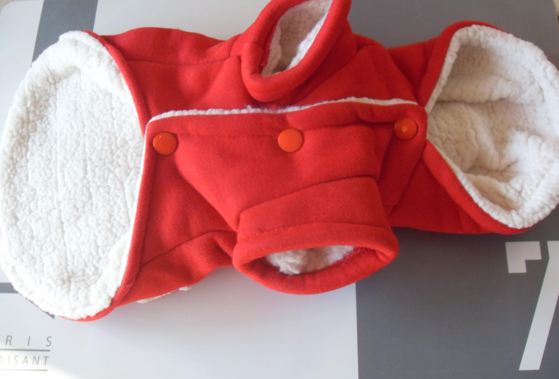 blanc noir capuche rouge vêtement chien chihuahua; yorkshire toy jack russel animaux. chiot blouson manteau duffle coat