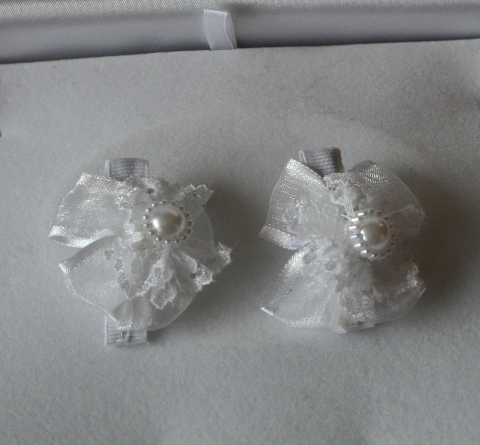 Barrettes-pinces noeud tissu blanc, fleur dentelle et perle.