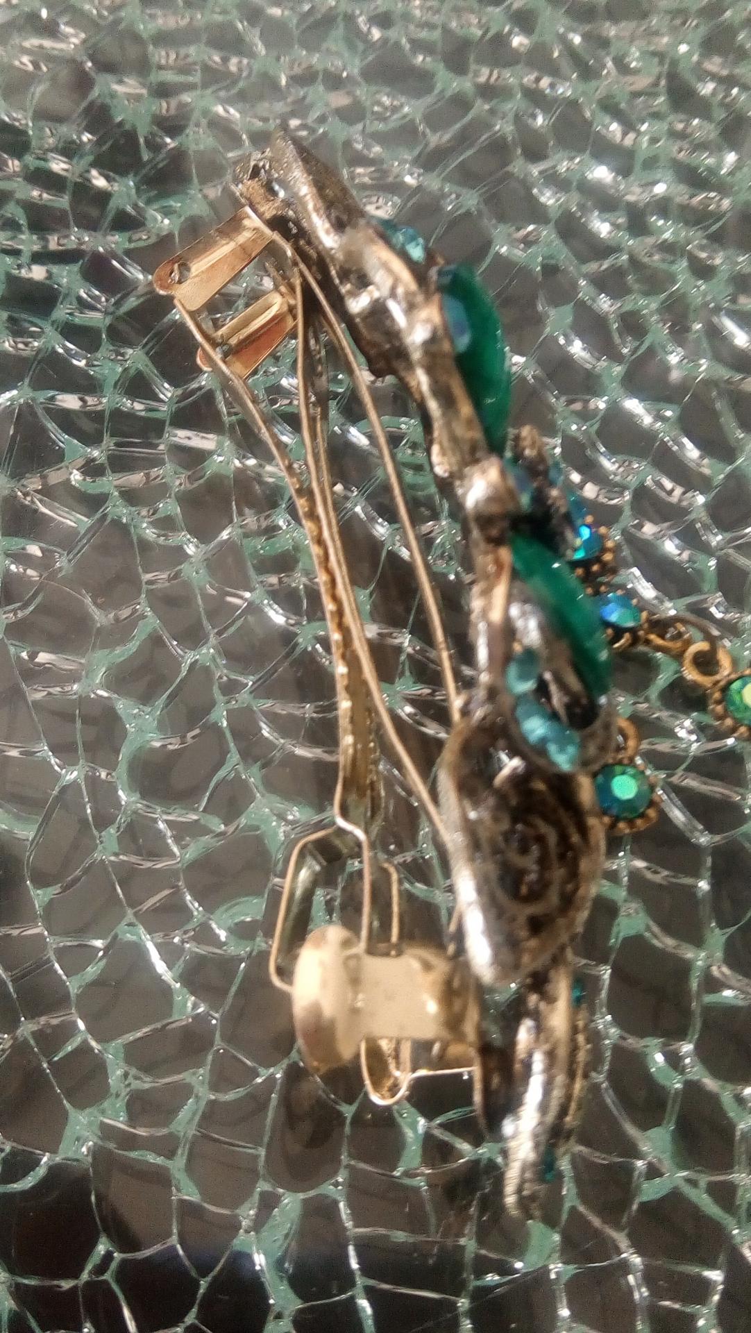 Grosse barrette verte sur support métal avec cabochon et strass.