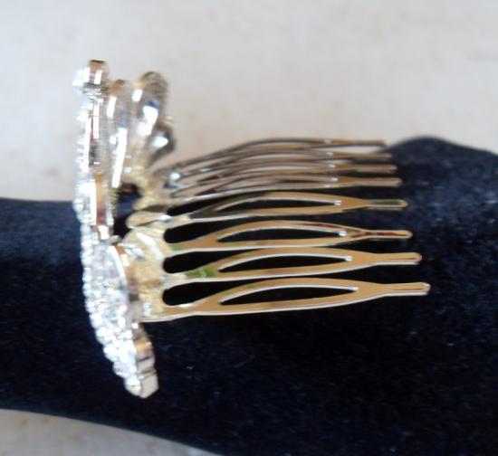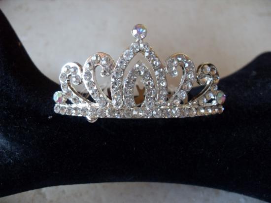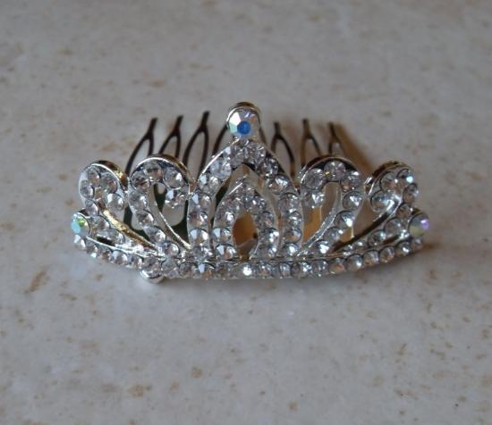 Diadème en métal argenté et strass blanc. Se positionne grâce à son peigne.