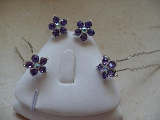 Epingles cheveux fleurs strass mauve. Idéal pour une coiffure de mariée ou pour une soirée!