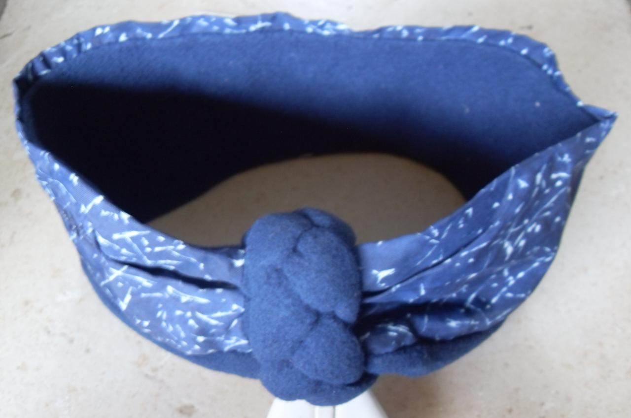 Bandeau cheveux pour l'hiver en tissu doublé polaire avec tresse de tissu sur le devant.