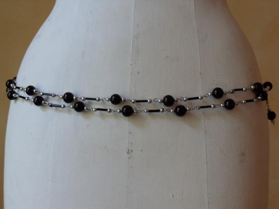 Ceinture-bijou, 2 rangs perles noires