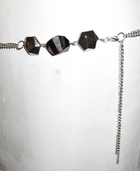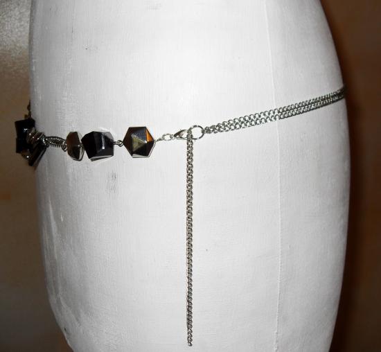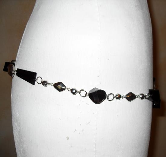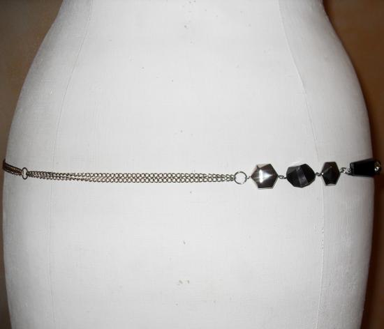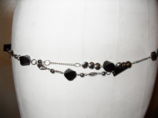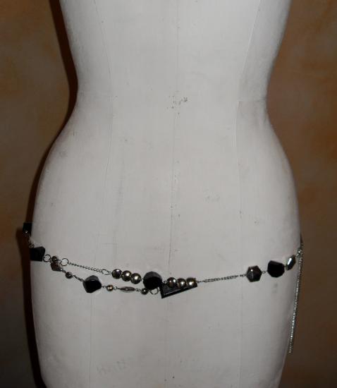 Ceinture-bijou, chaîne-perles argentées et noires.