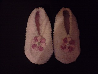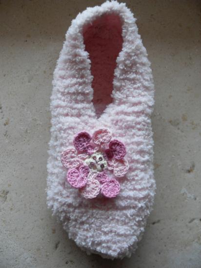 Rose fleurs création artisanale tricotée main Chaussons brodées