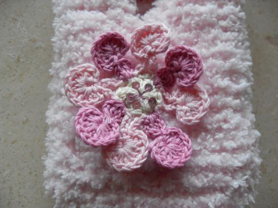 Chaussons rose fleurs brodées. Création artisanale tricotée main.