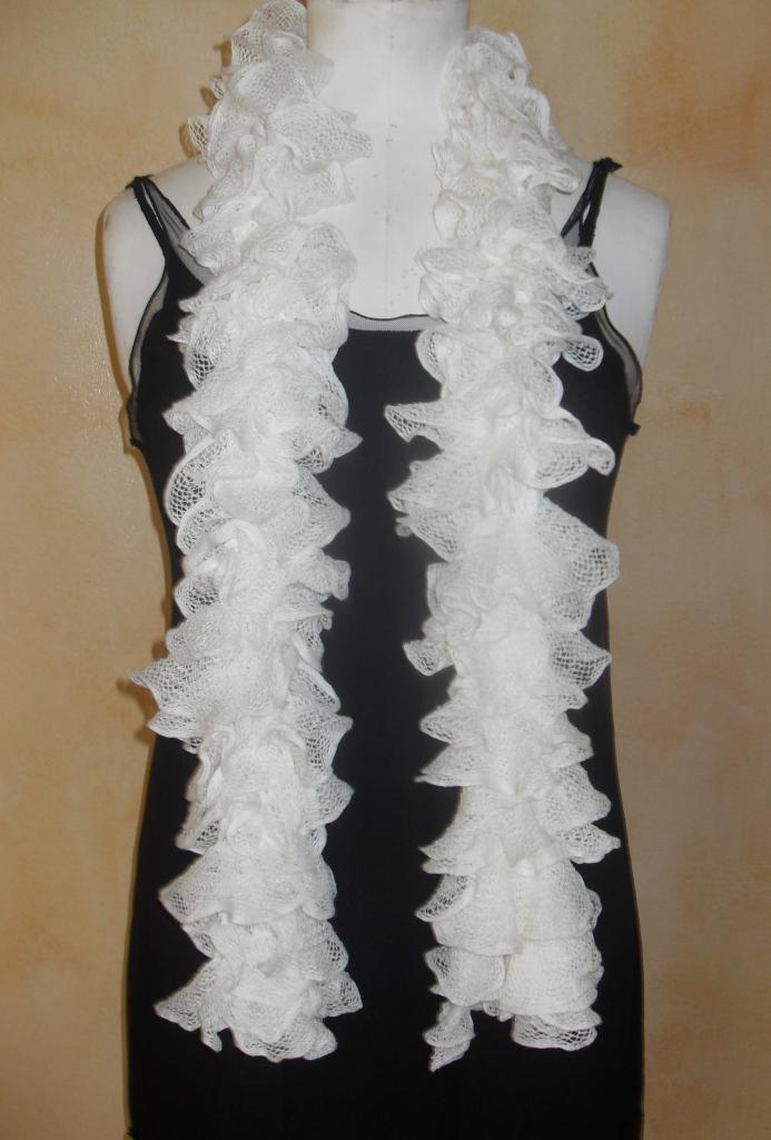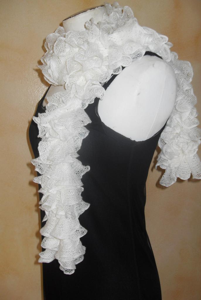 Echarpe frou-frou blanche à volant, laine ruban.