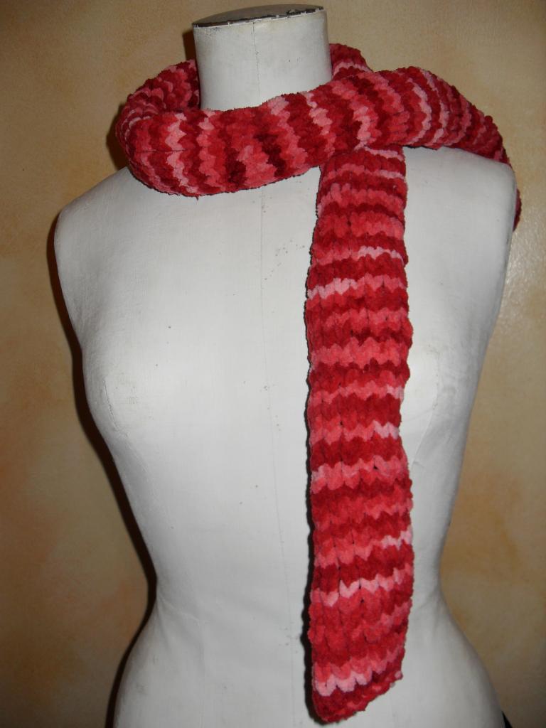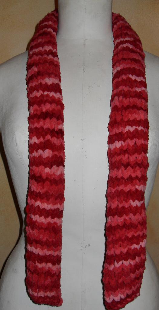 Echarpe longue, laine rose.