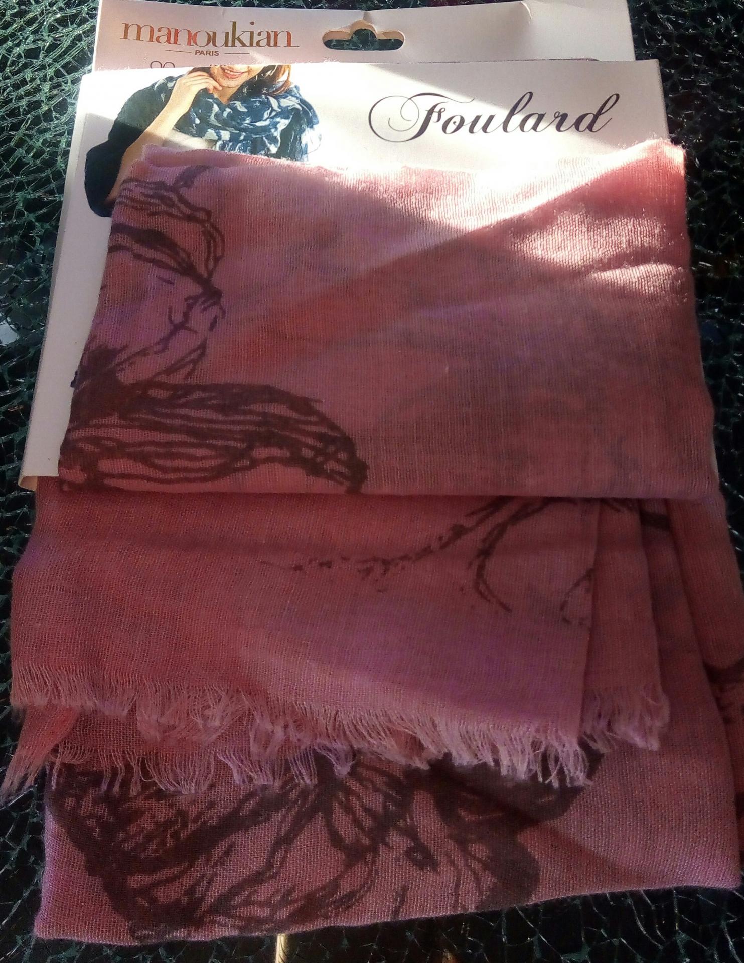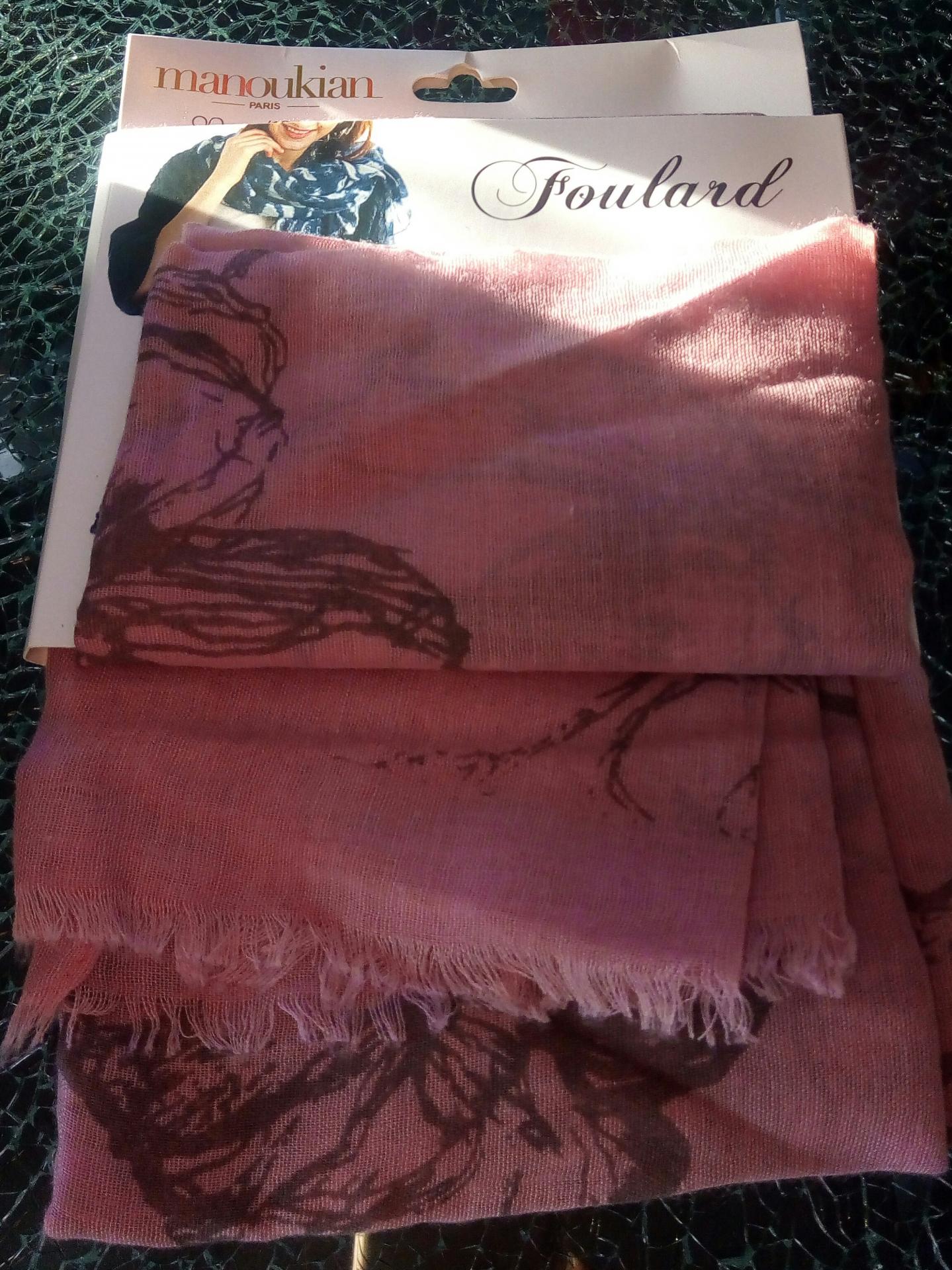 Foulard rose et fleurs Alain Manoukian.
