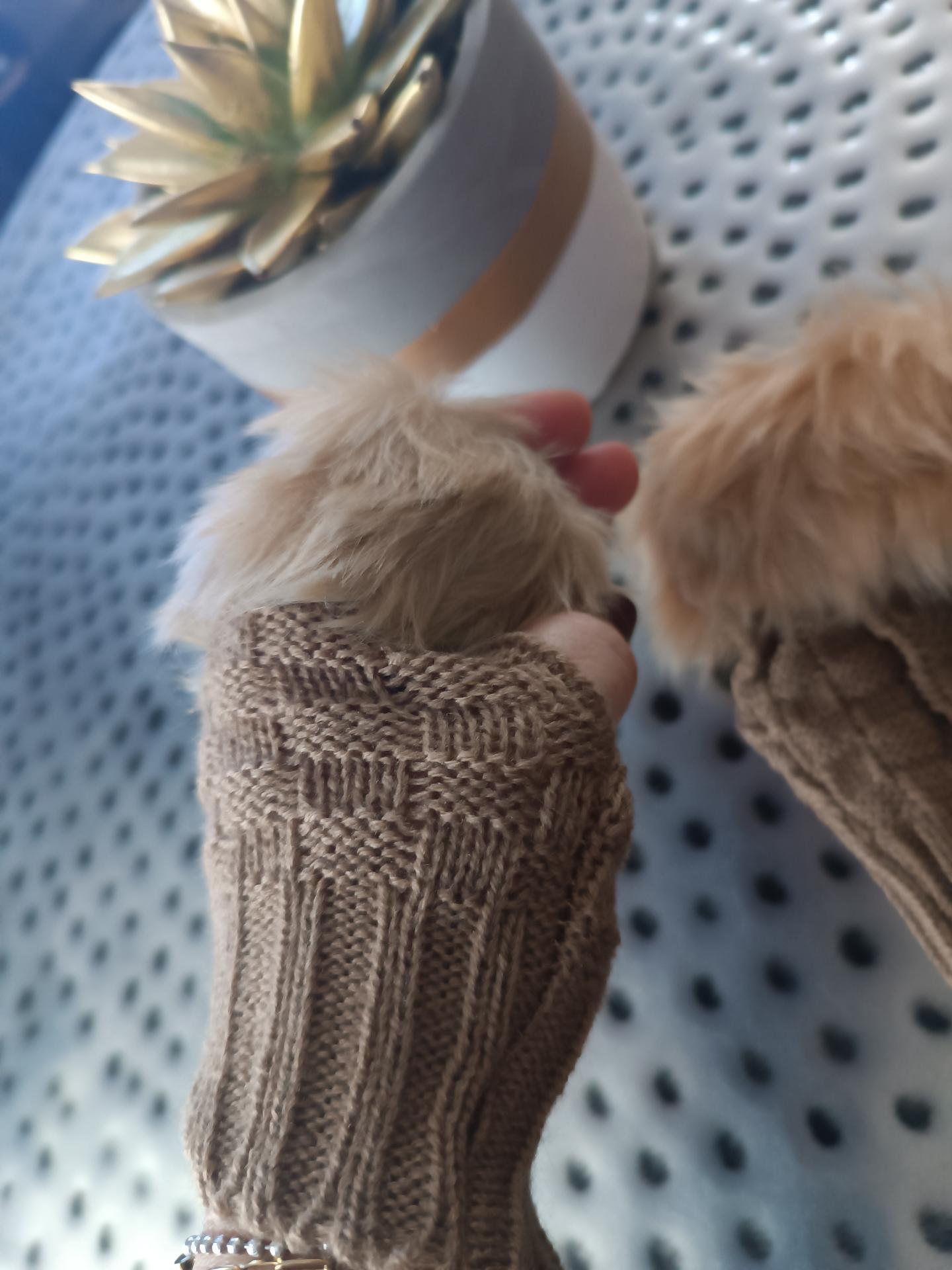 Mitaines marron en laine et imitation fourrure.
