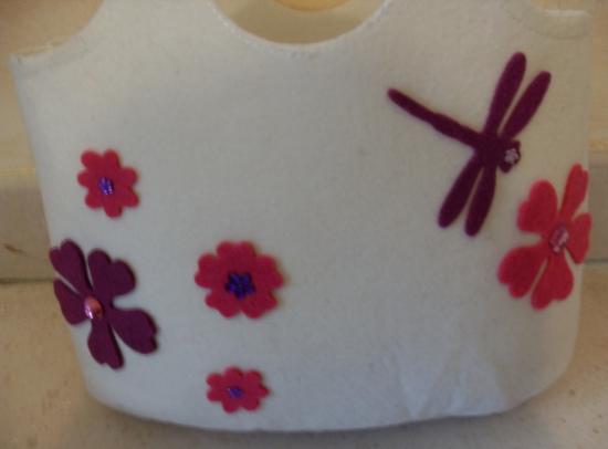 strass blanc Sac à main fleurs libellule feutrine roses violettes