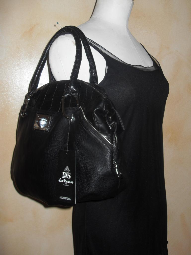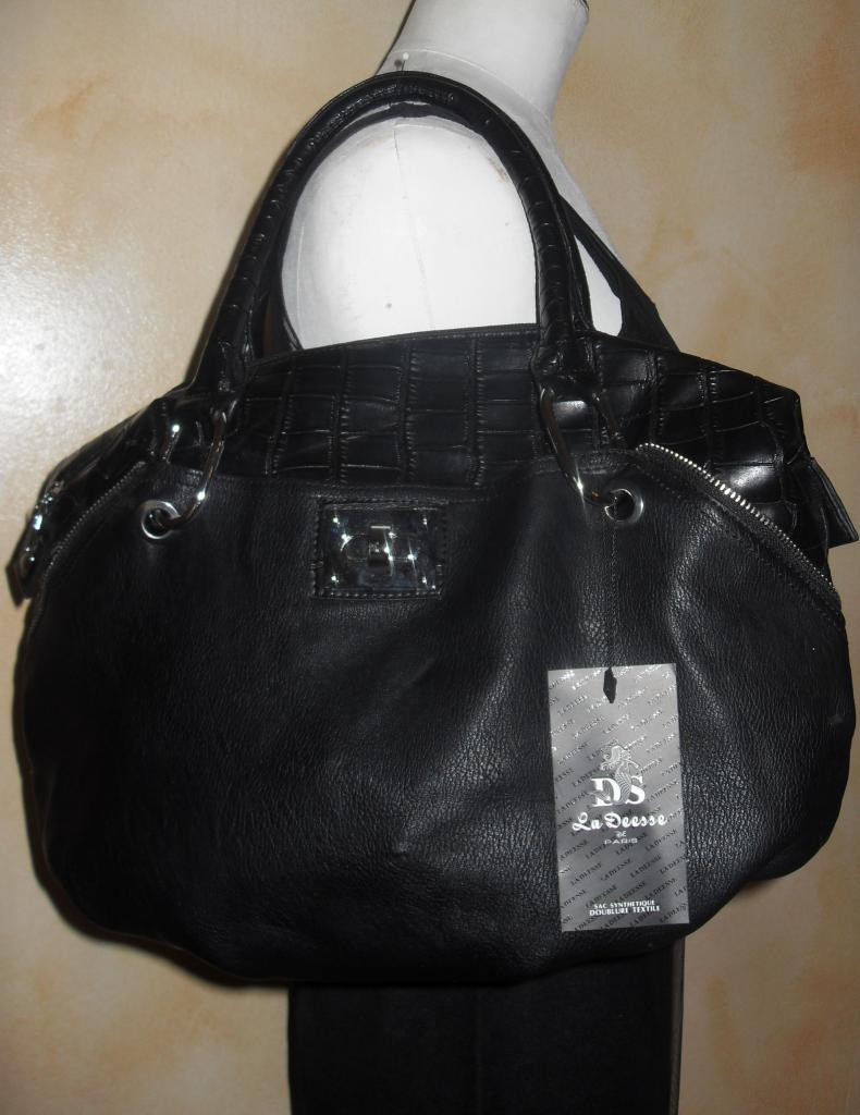 Sac à main noir, crocro et zip.