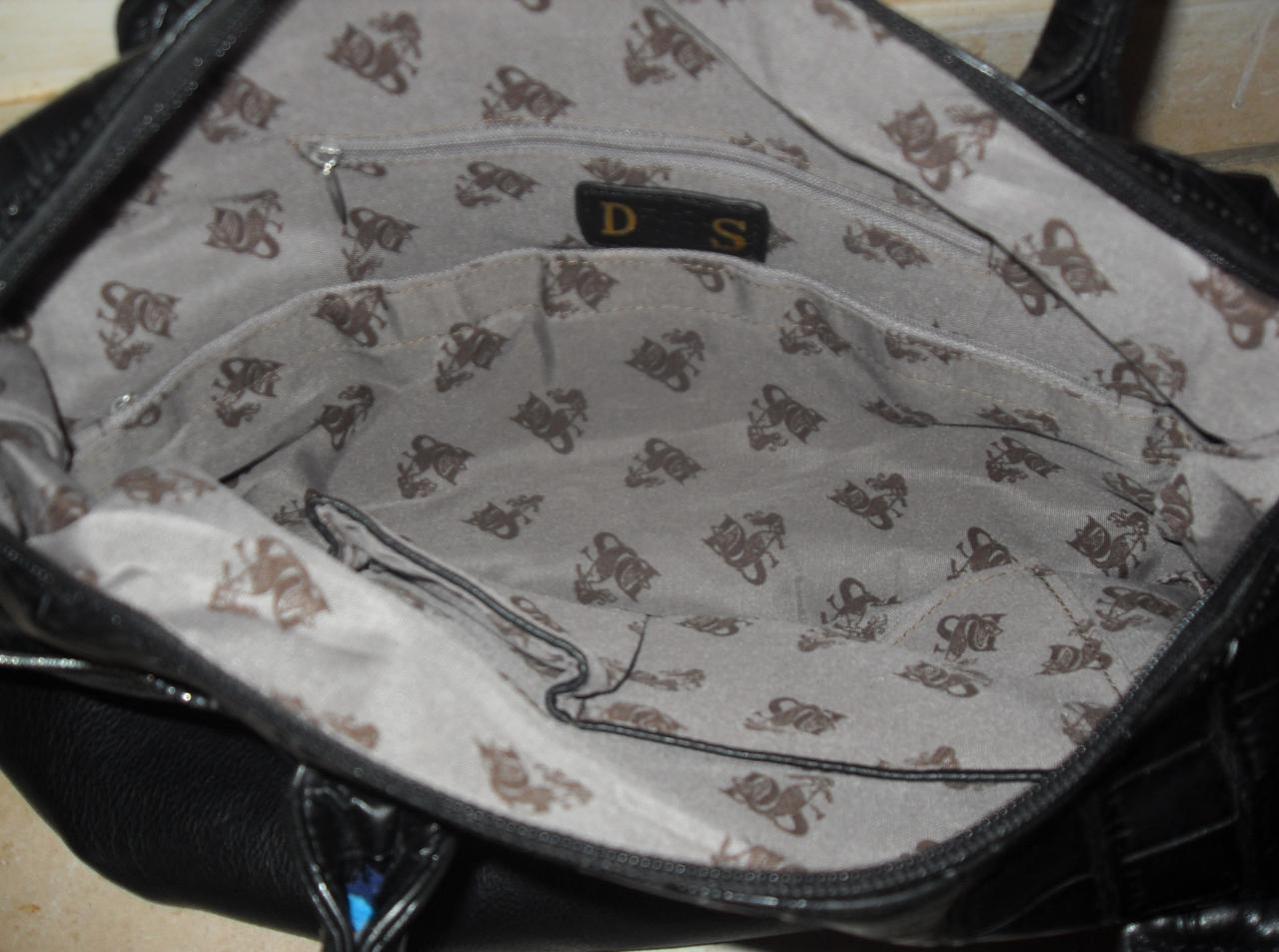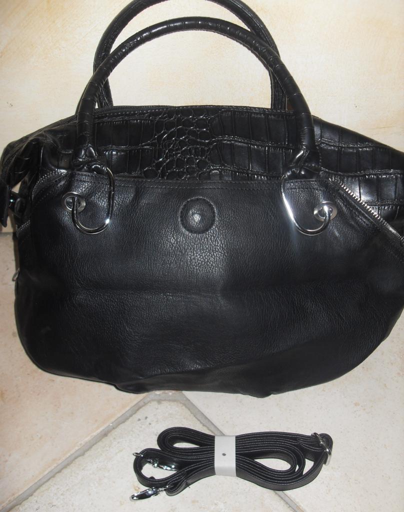 Sac à main noir croco argenté doublue poches cuir. zip laniere porté main
