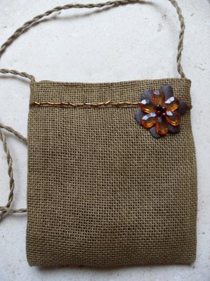 Sac besace en paille marron et sa fleur orange.