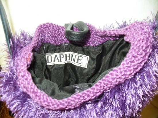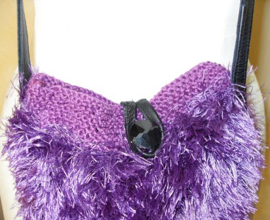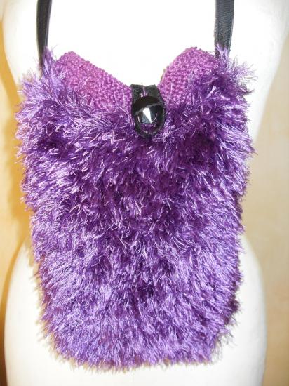 Sac à main bandoulière en laine prune imitation fausse fourrure.