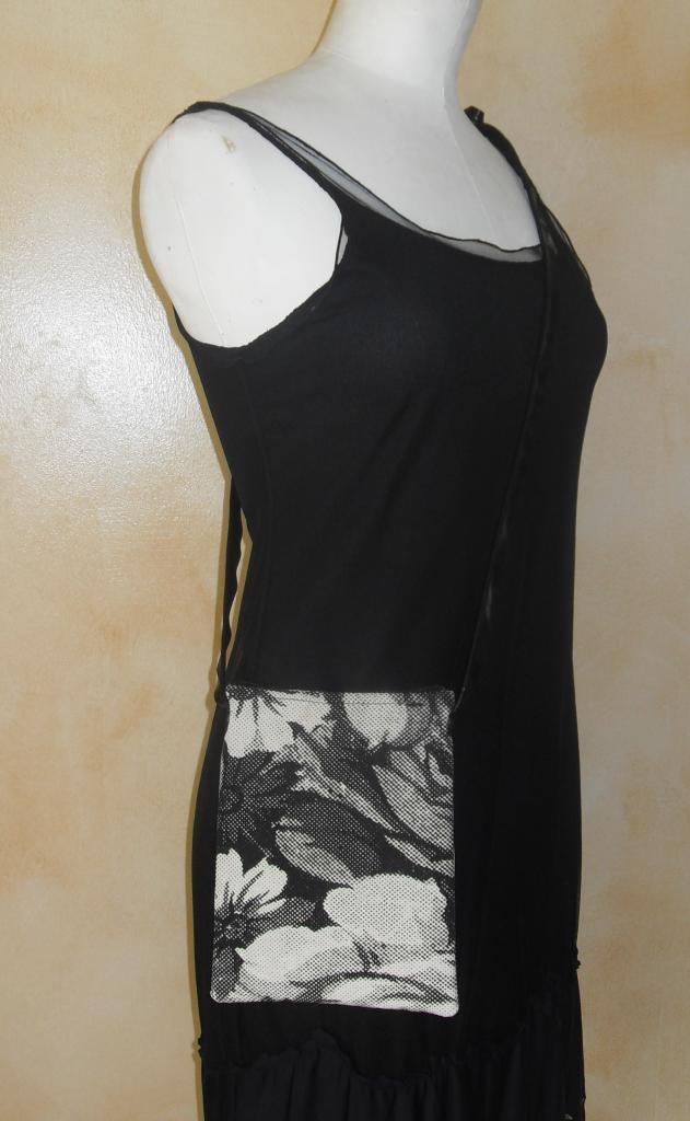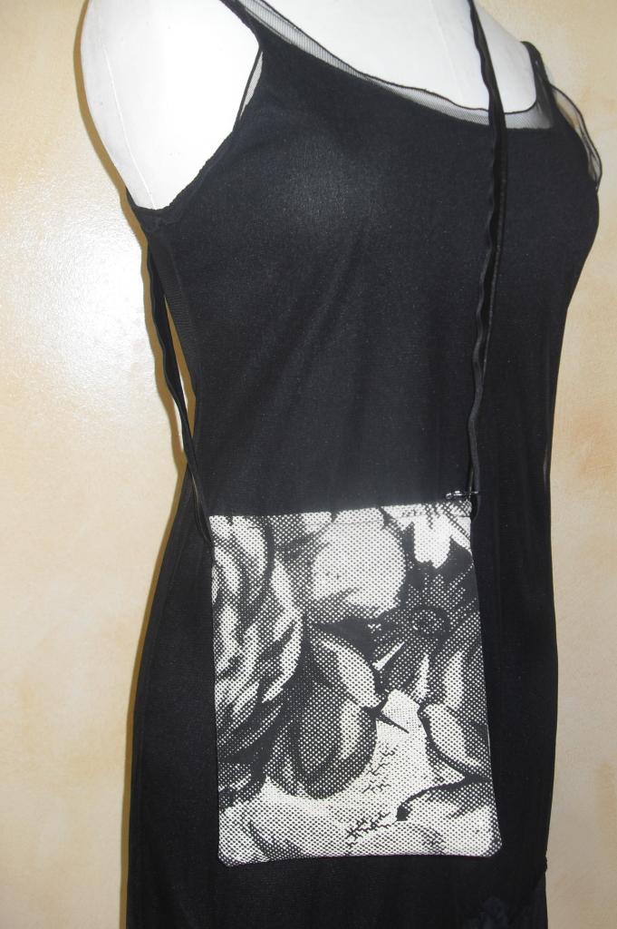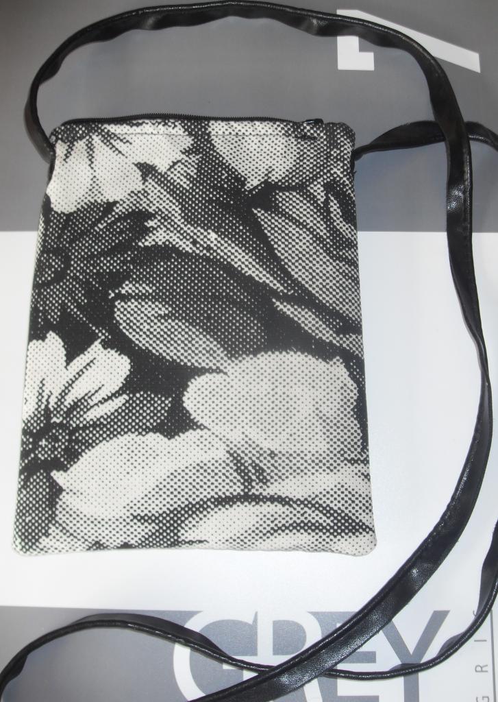 Sac besace, tissu fleuri noir et blanc, création artisanale.