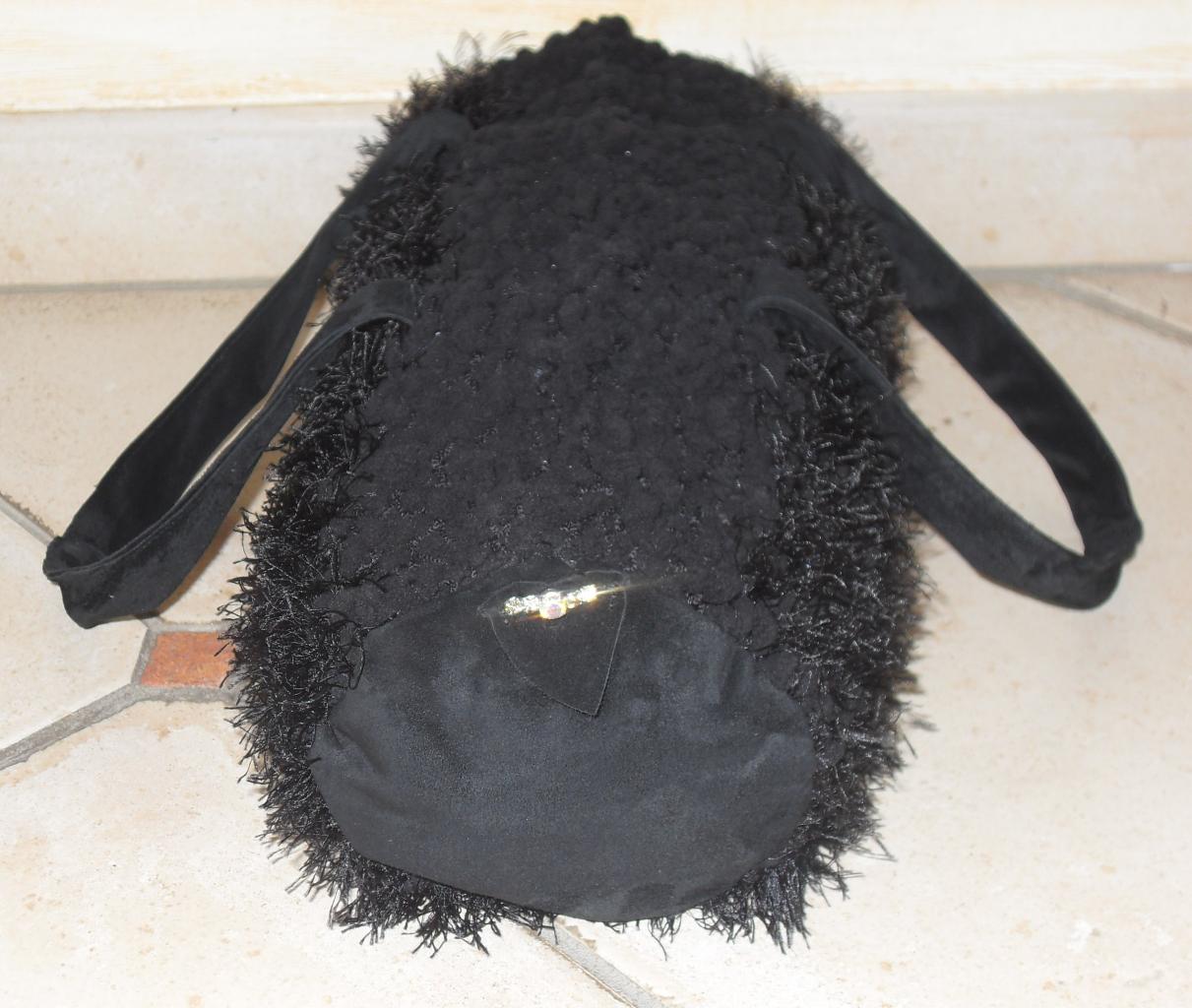 fausse fourrure cristal de swarovski noir Sac à main tricotée main création unique bowling daim