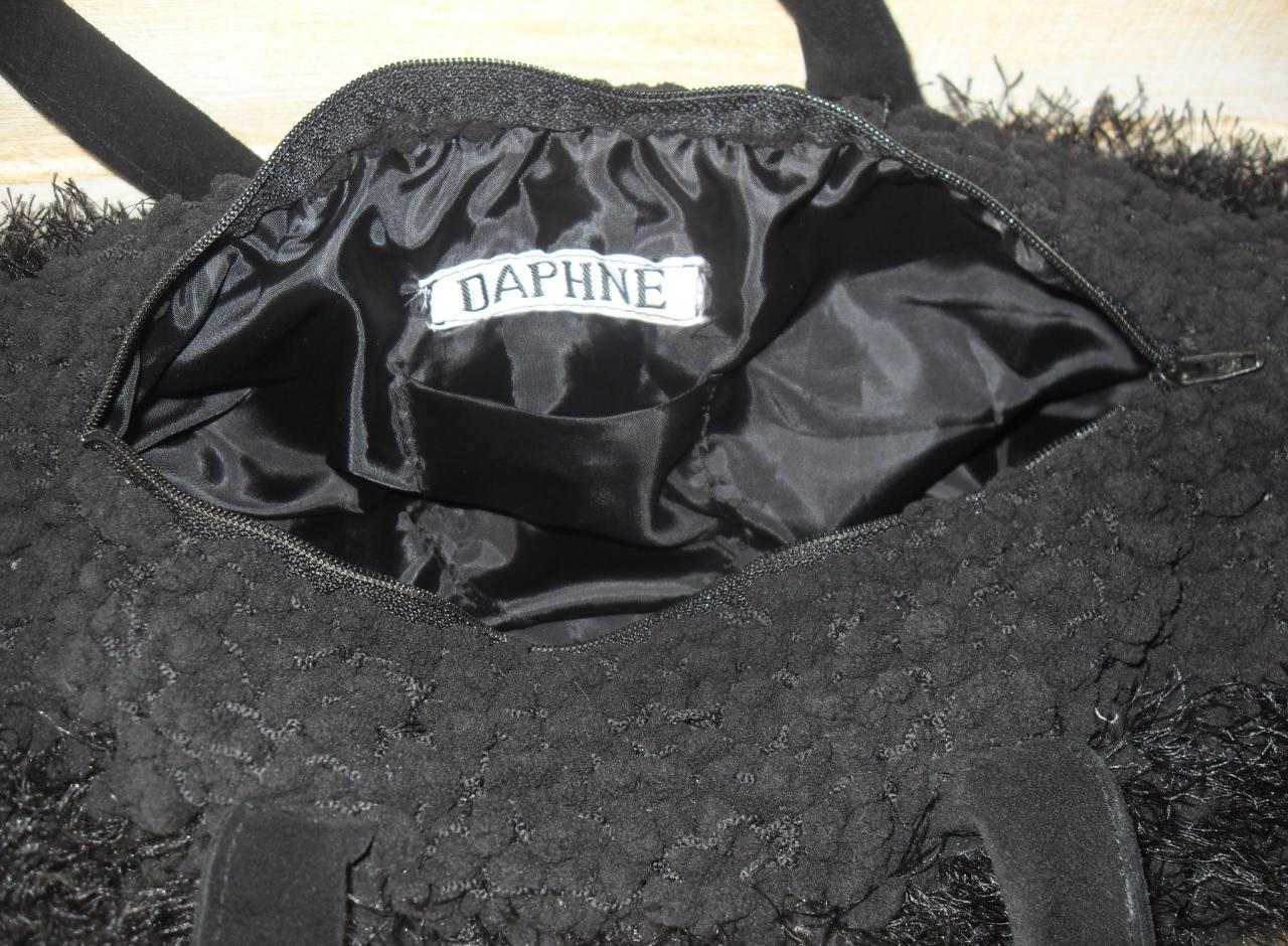 Sac bowling,fausse fourrure noire daim et cristal de swarovski.