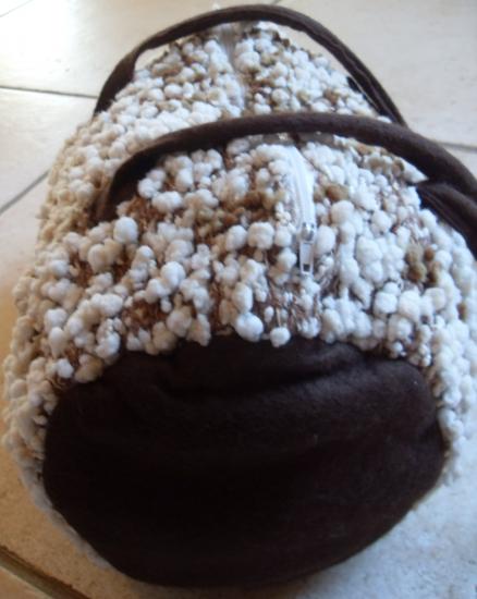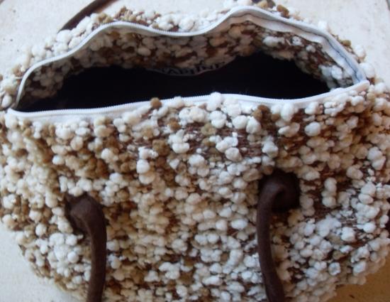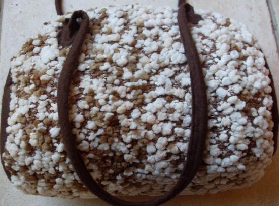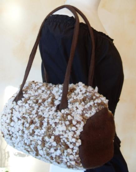 laine marron tricotée main création unique feutrine fabrication française. sac bowling