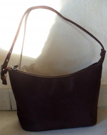 Lanière réglable. Intérieur doublé avec petite poche. Fermeture éclair.