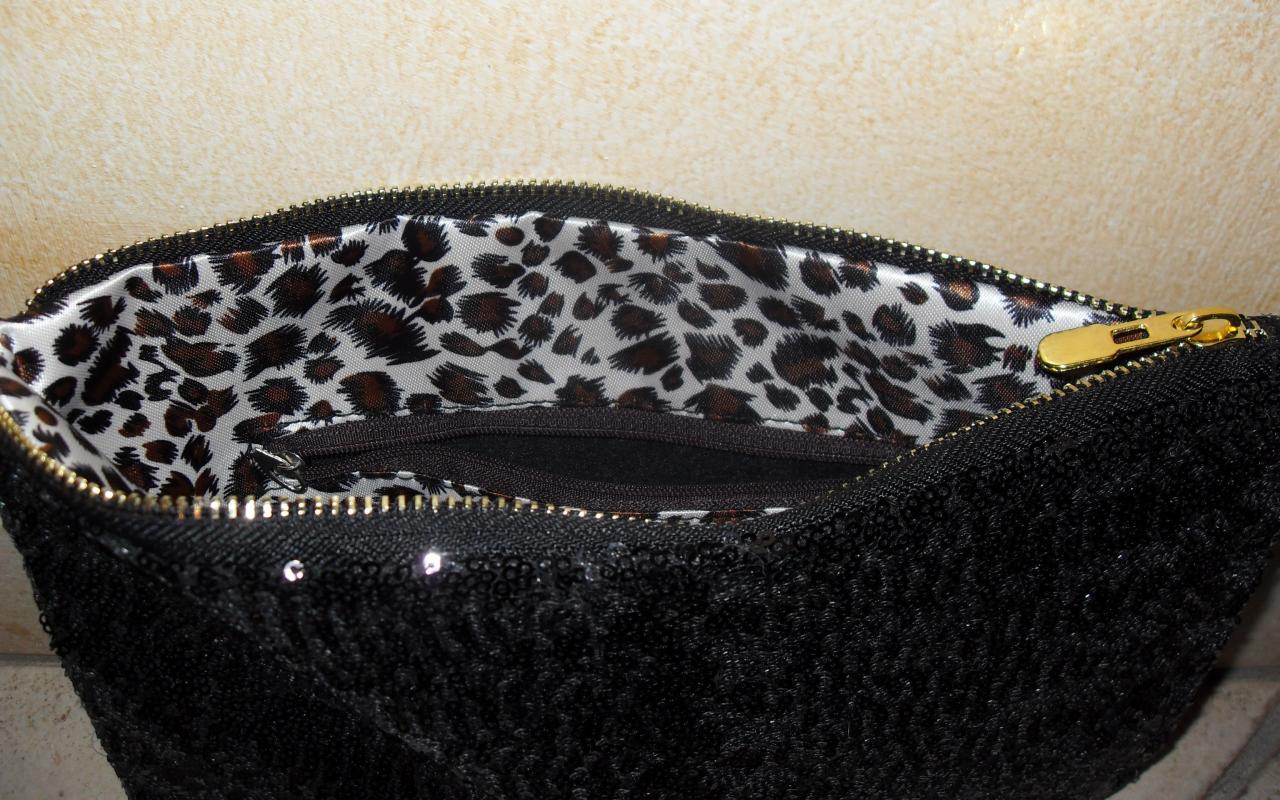 noire paillettes soirée sac pochette doublure léopard fêtes noel.
