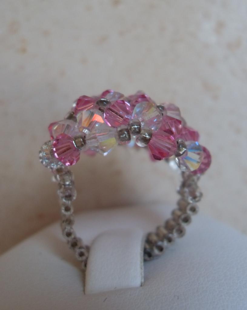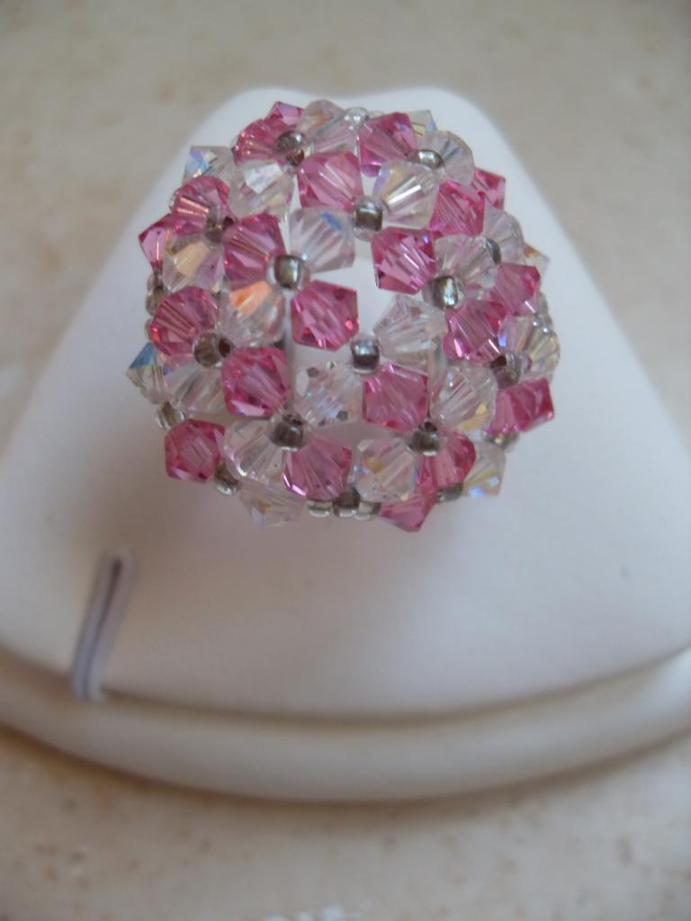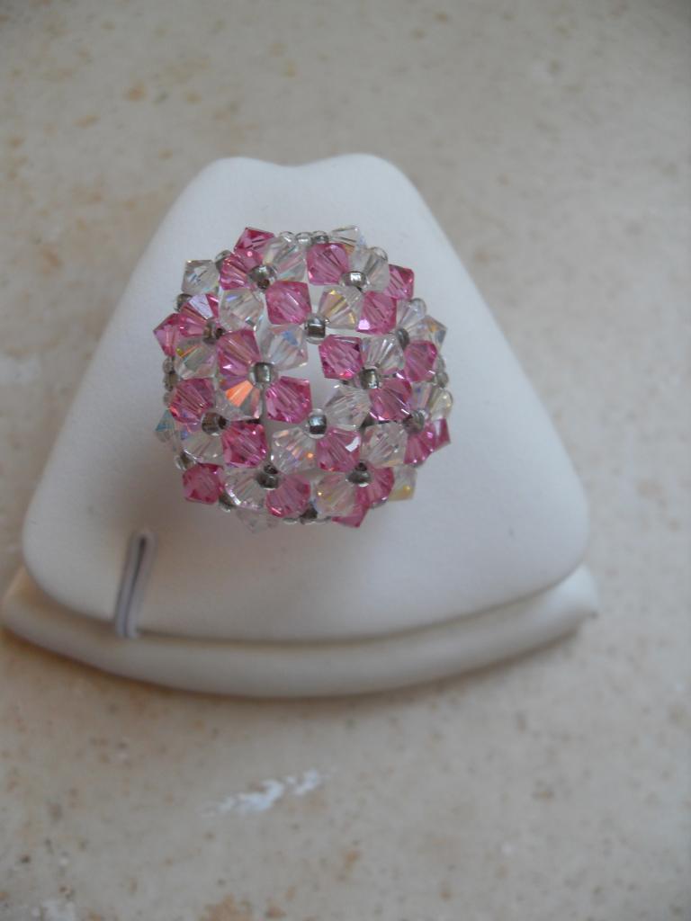 Bague cristal dôme swarovski rose et blanc, création artisanale.
