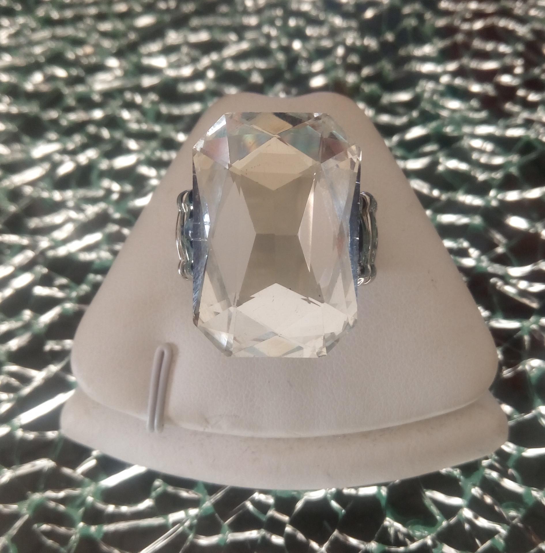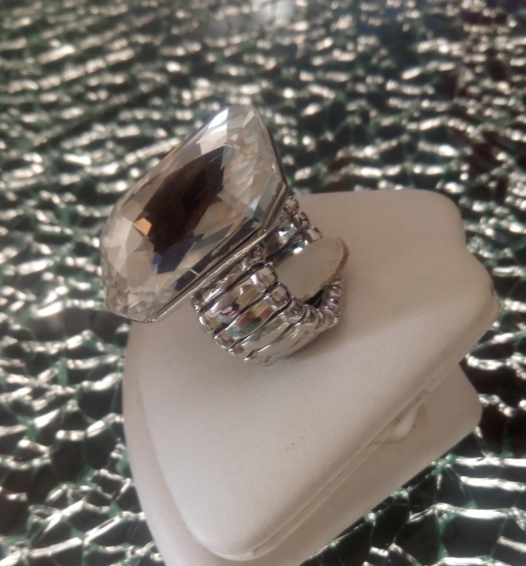 Bague élastiqué en métal argenté avec son strass rectangle.