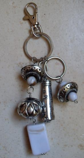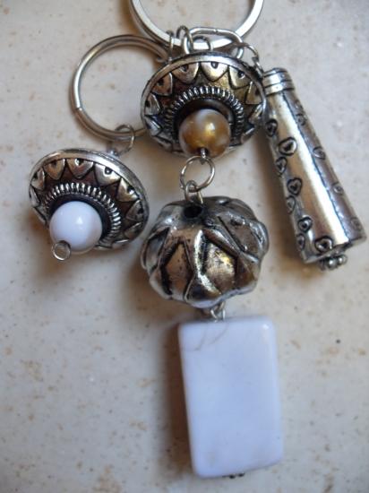 Bijou de sac perles métal-blanc-doré.