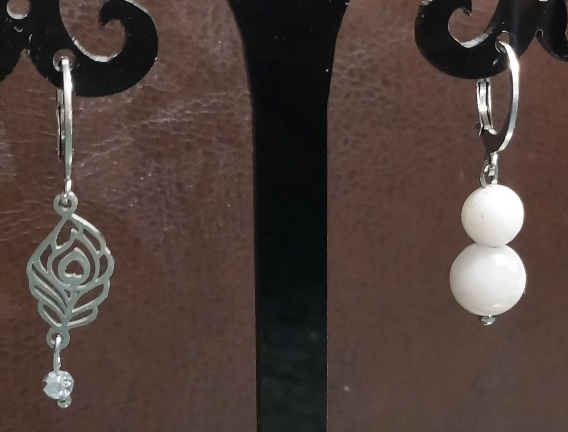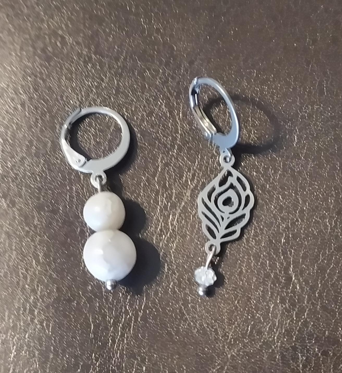 Boucles d'oreilles acier inoxydable et agates blanches et pierres naturelles.