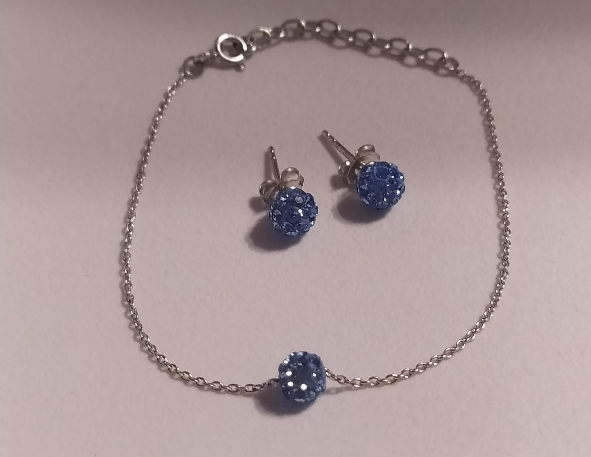 Bracelet argent 925, boule oxyde de zirconium bleu.