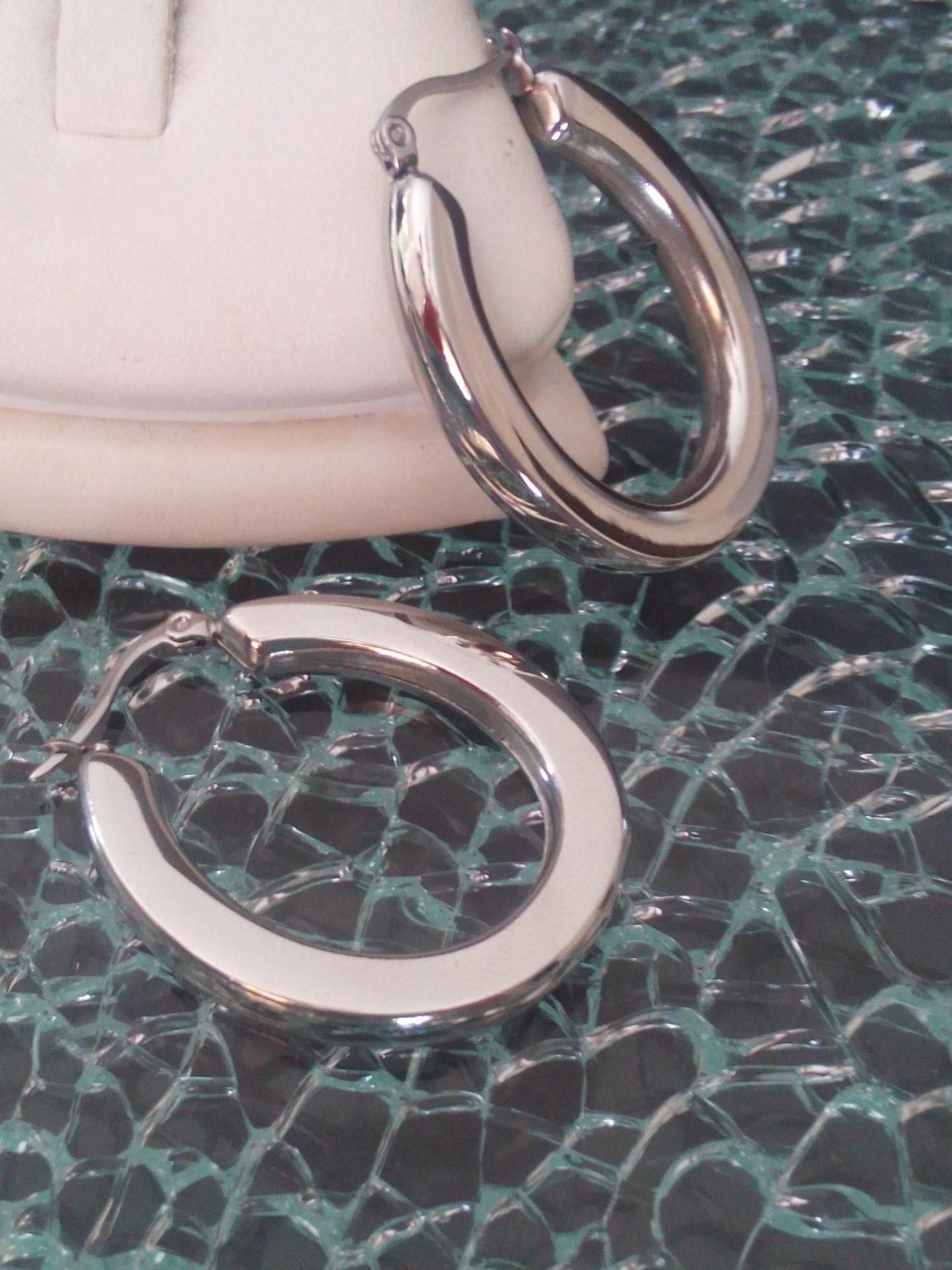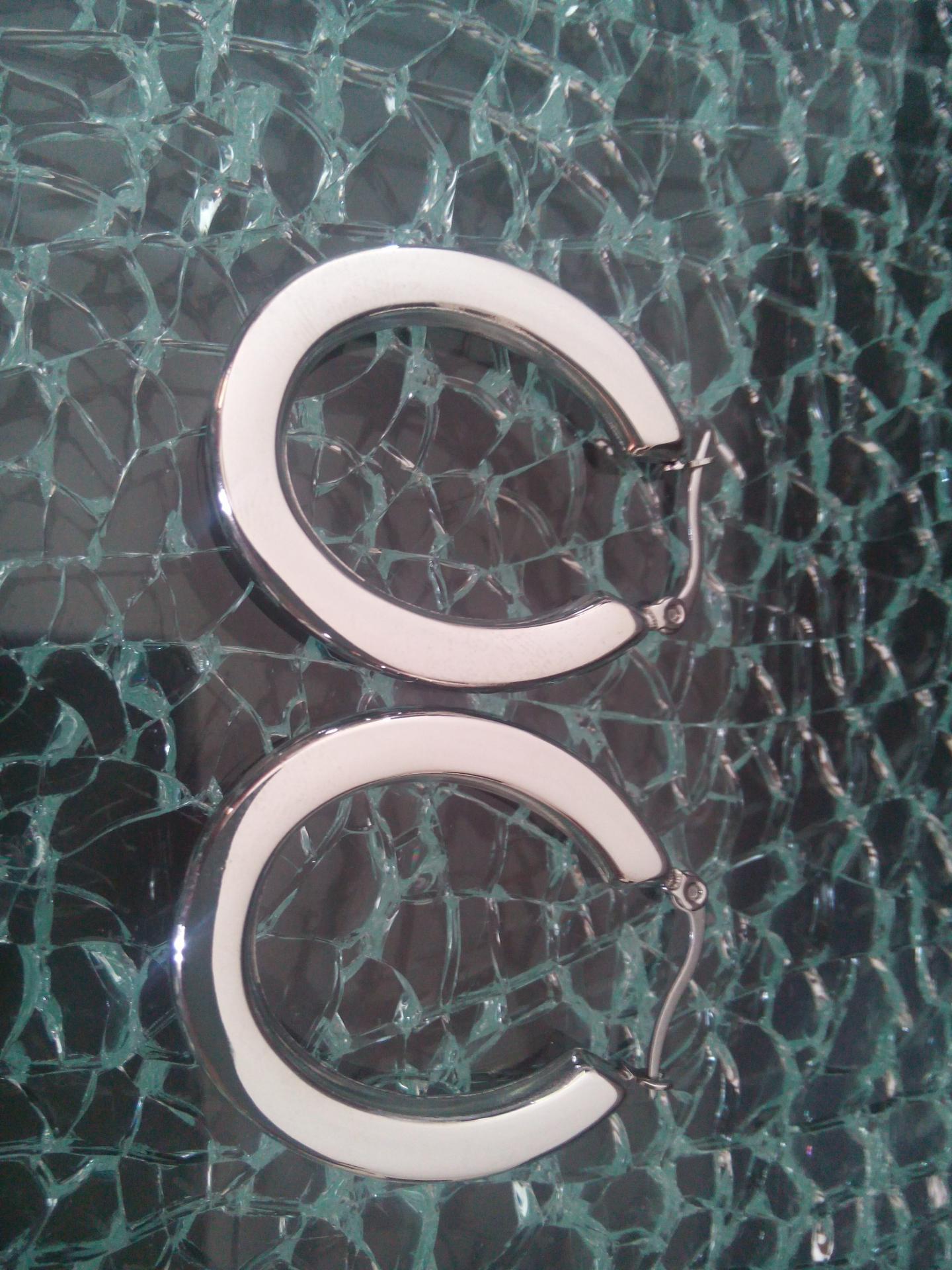 boucles d'oreilles argenté créoles allongées acier inoxydable