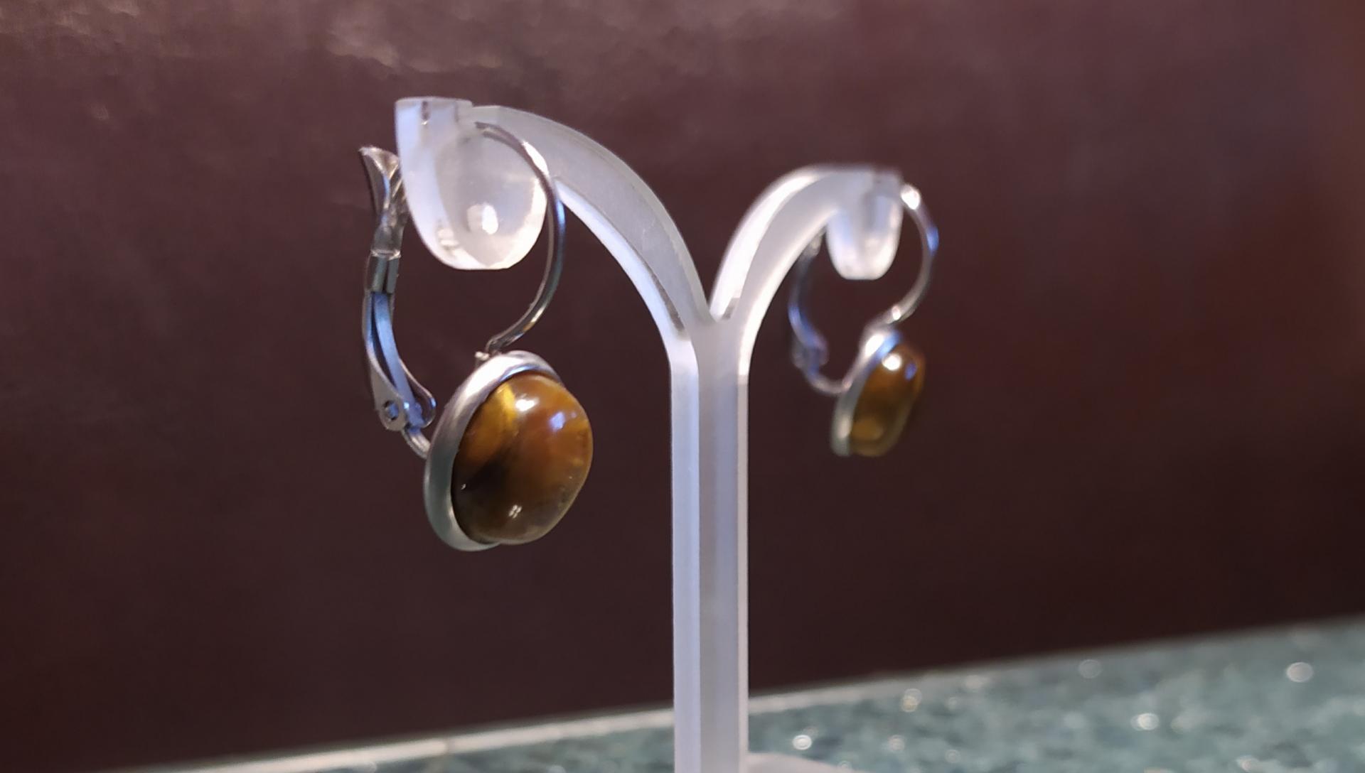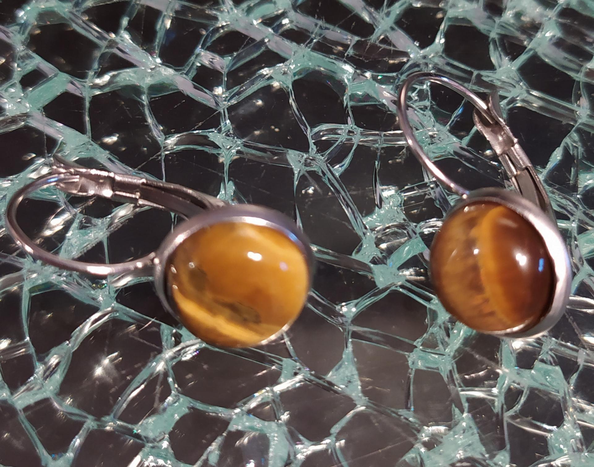 Boucles d'oreilles dormeuses et cabochon oeil du tigre.