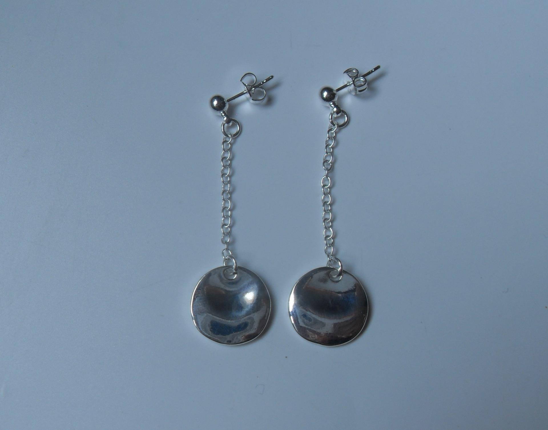 Boucles pendantes longues en argent 925 chaîne et rond. Fermoir clous.