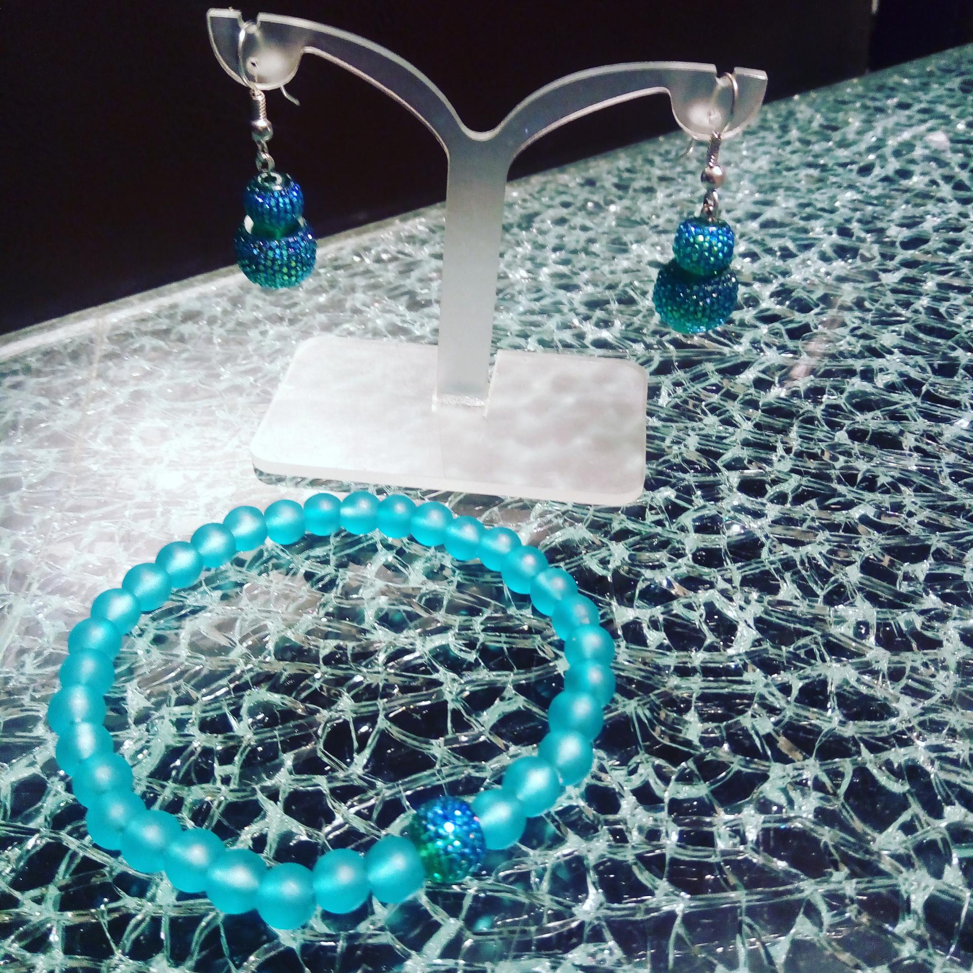 Bracelet bleu turquoise, perles givrées et perle effet strass. Bracelet élastiqué.Bracelet bleu turquoise...15.00€ TTC