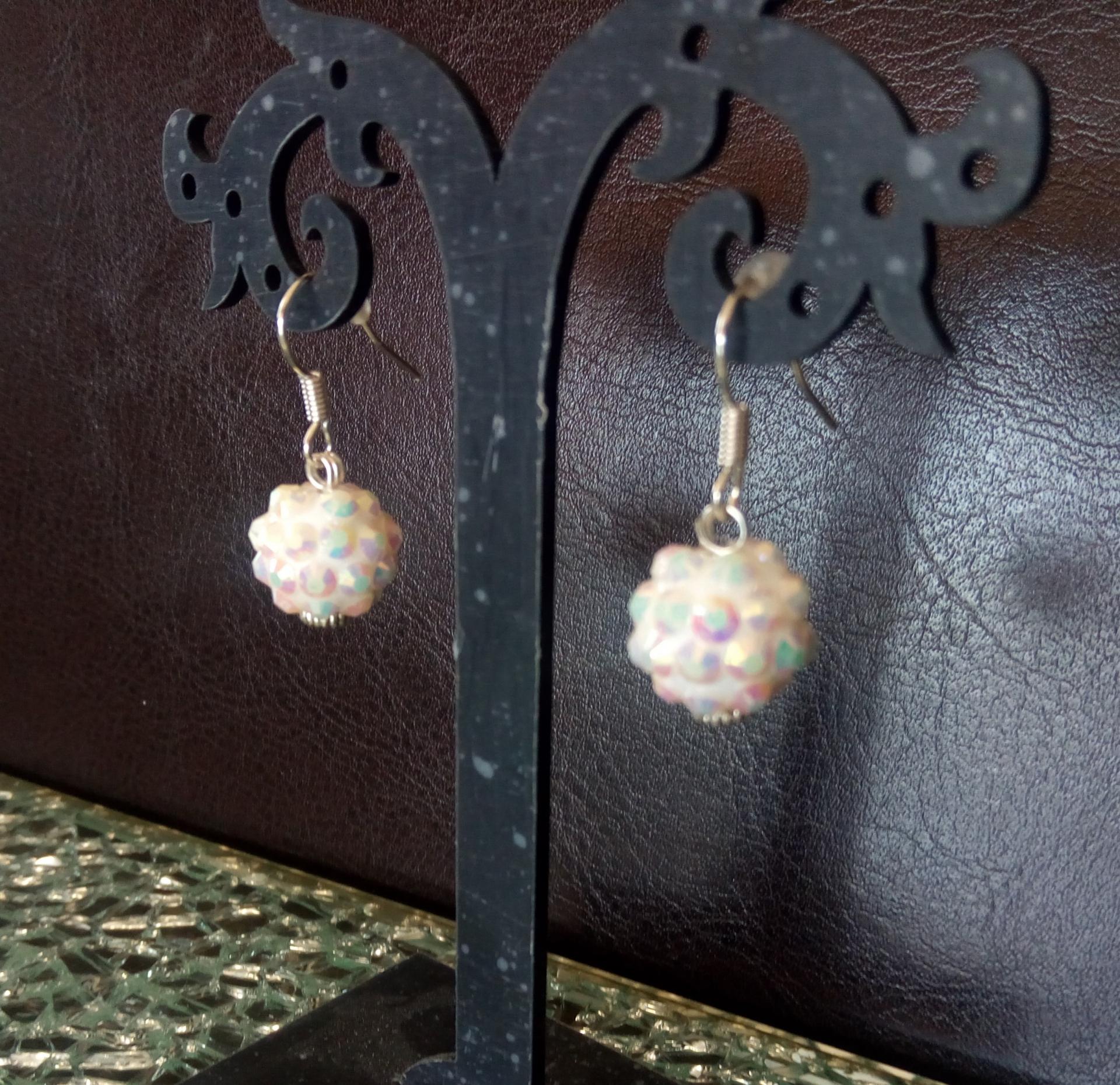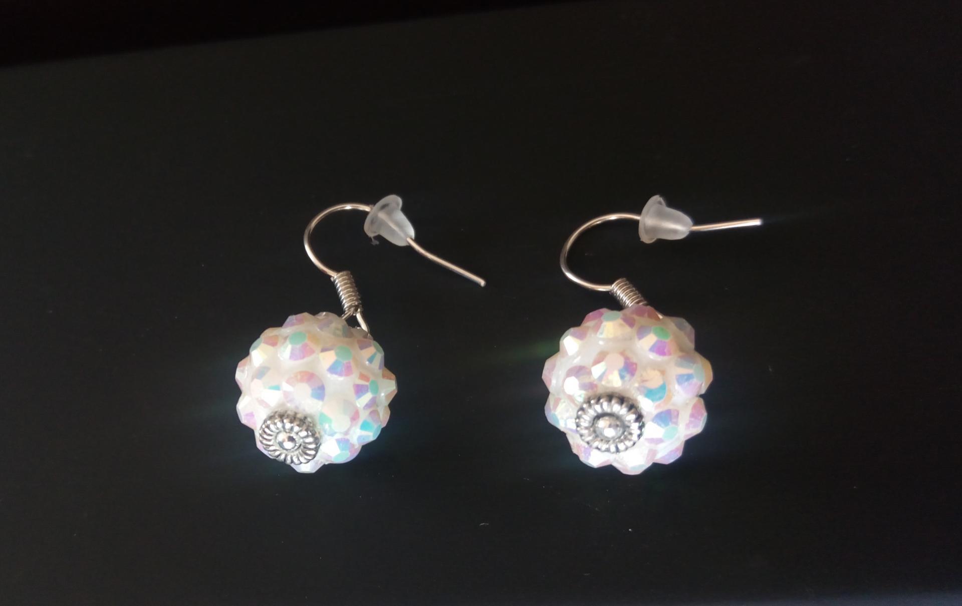 Boucles d'oreilles perles blanches et strass.
