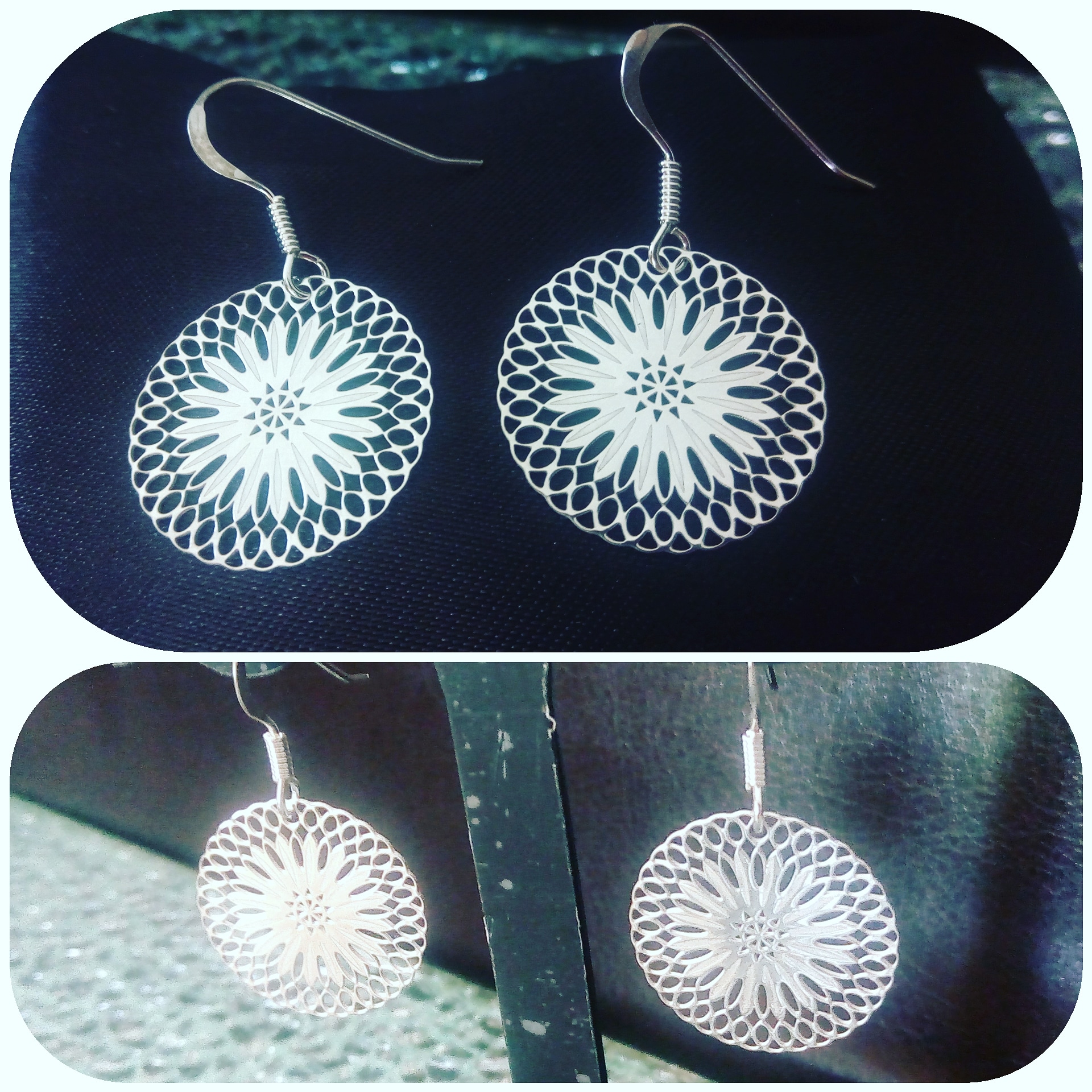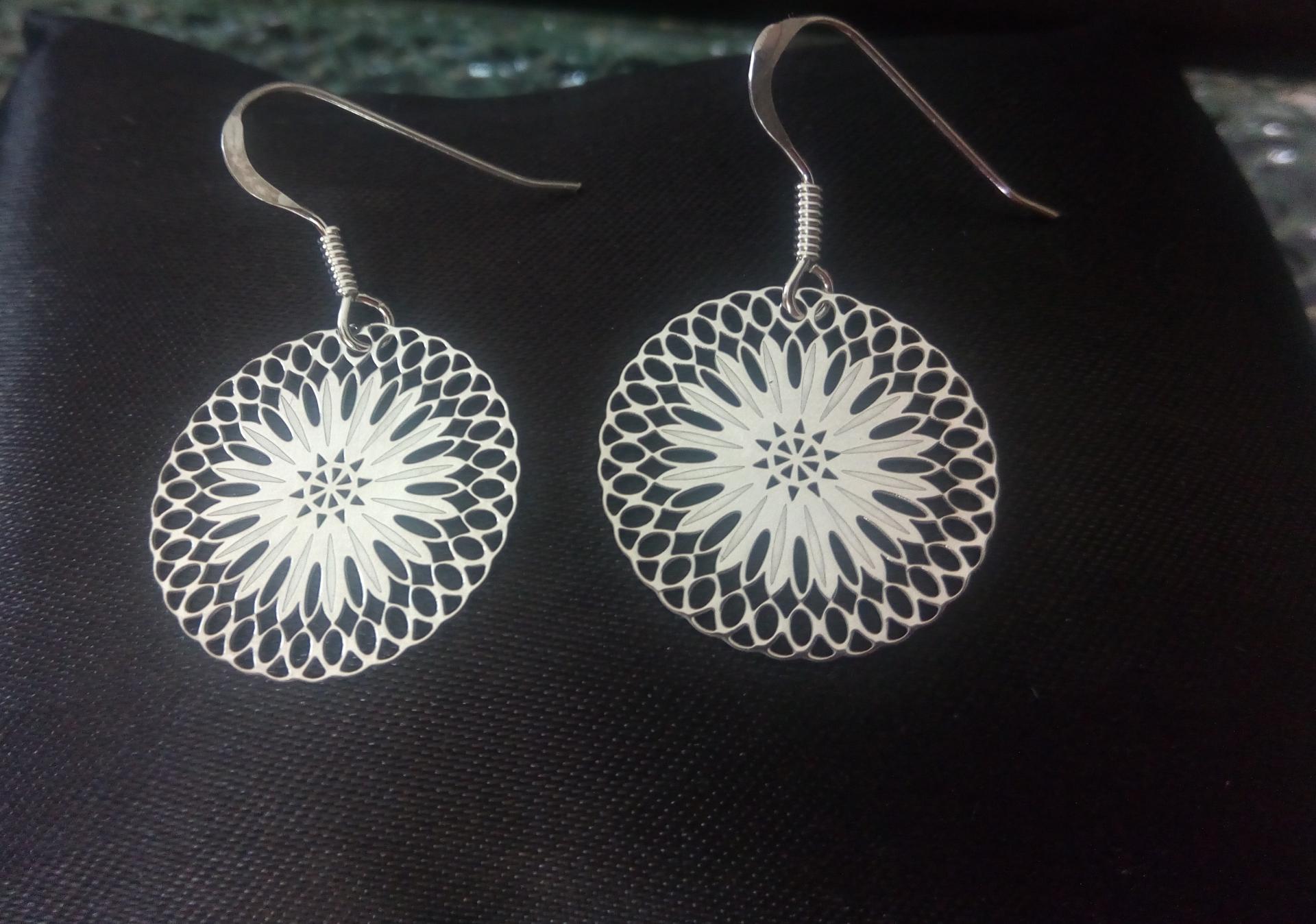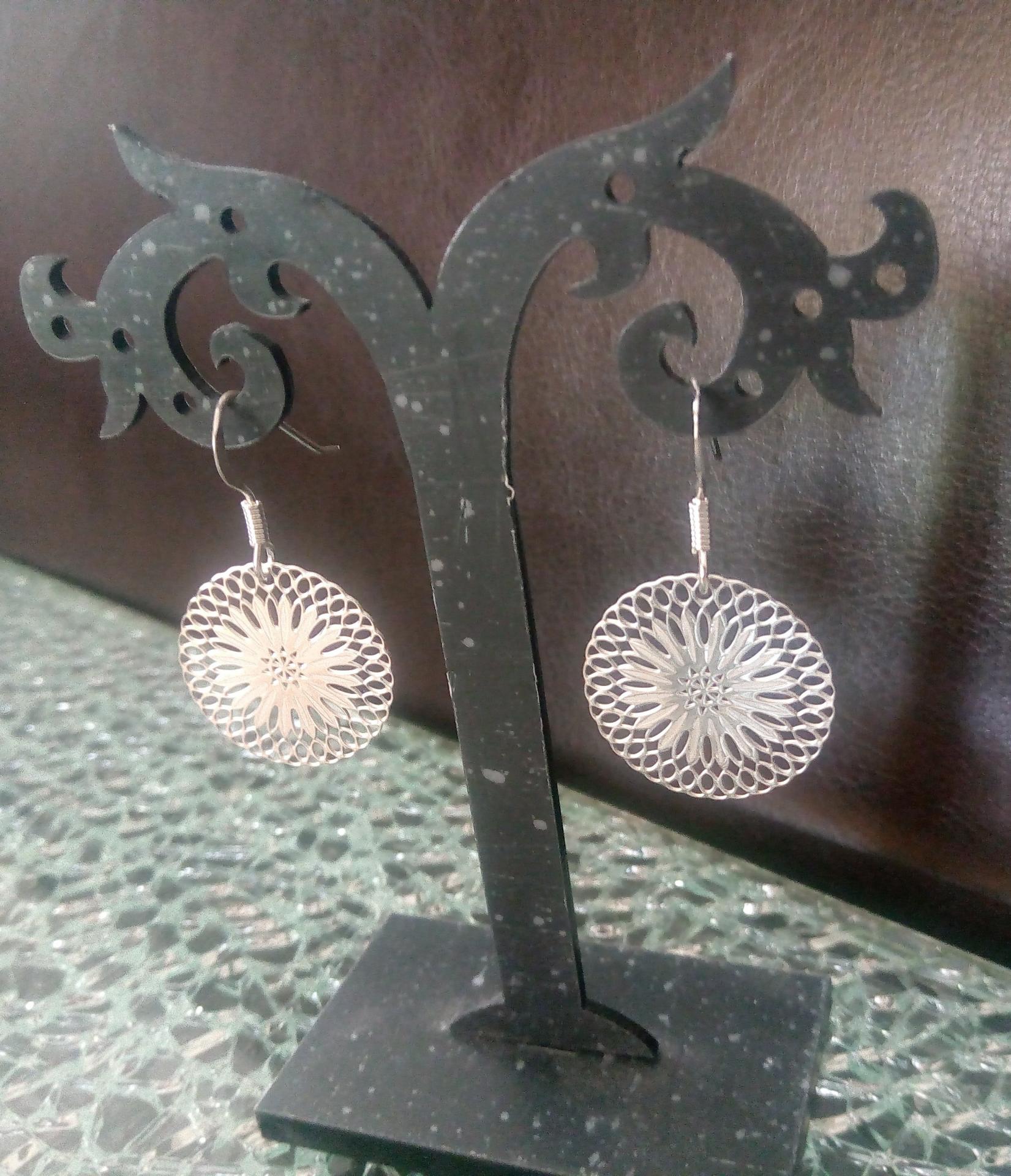 Boucles d'oreilles argent 925 et rosace dentelle.