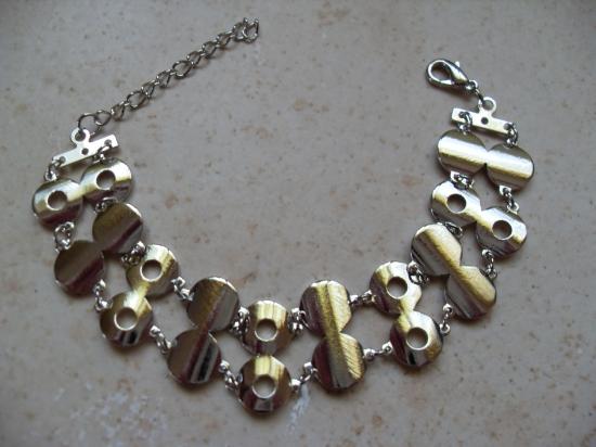 Bracelet avec 2 rangs de cercles en acier métal argenté, réglable grâce à sa chaînette.