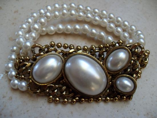 Bracelet 3 rangs imitation perles de culture et mailles