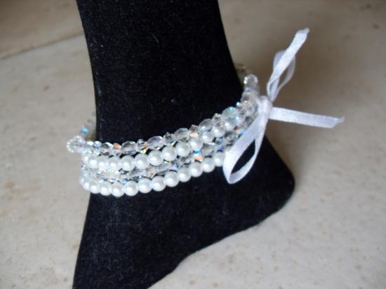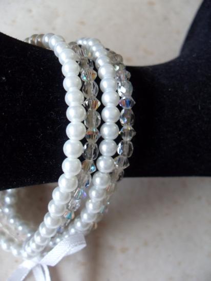 Bracelet blanc 4 rangs de perles , cristal de swarovski, collection "les séparables".