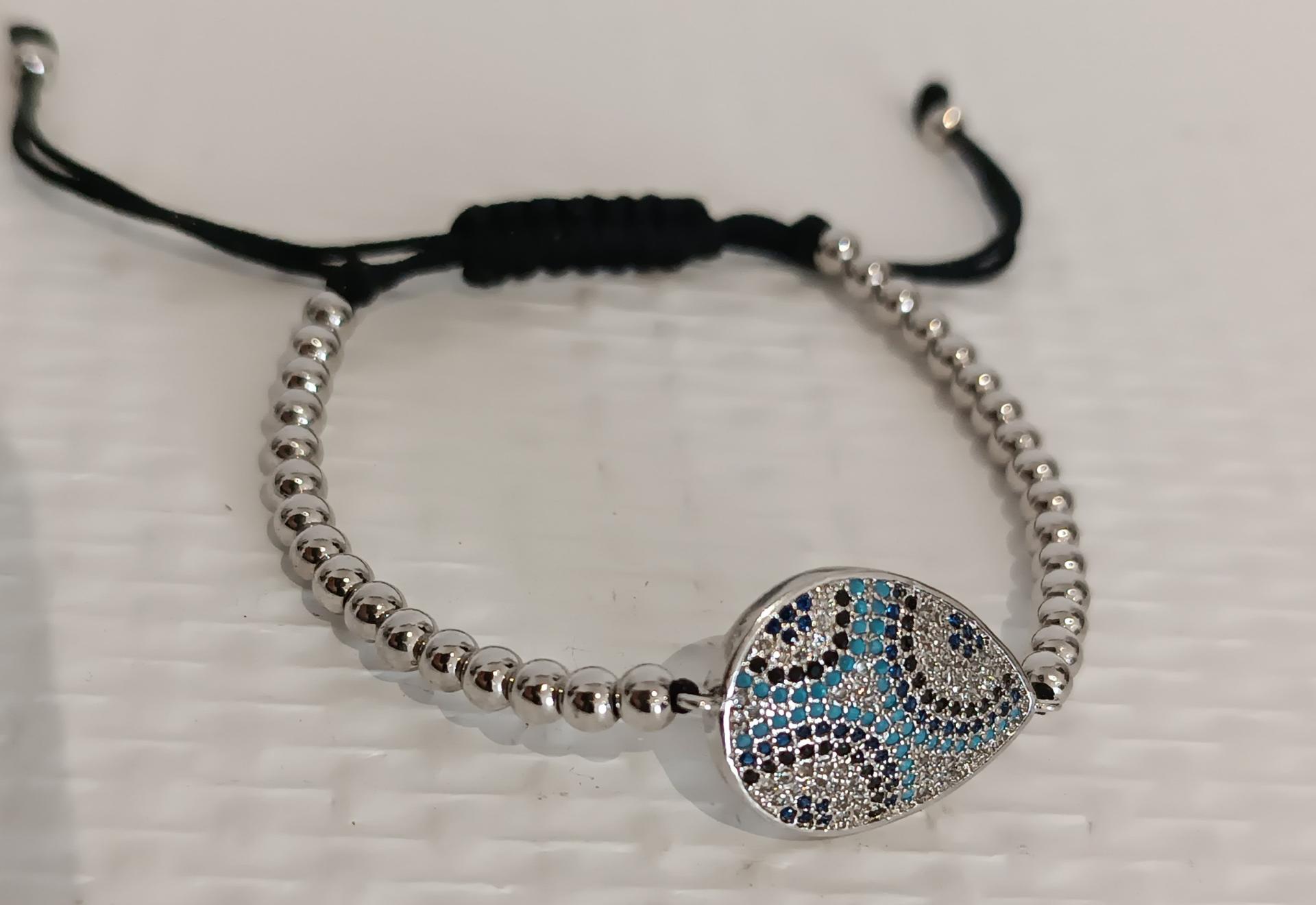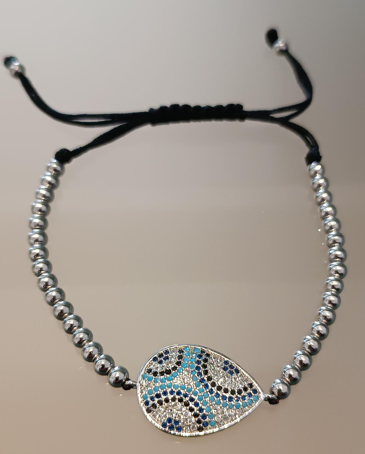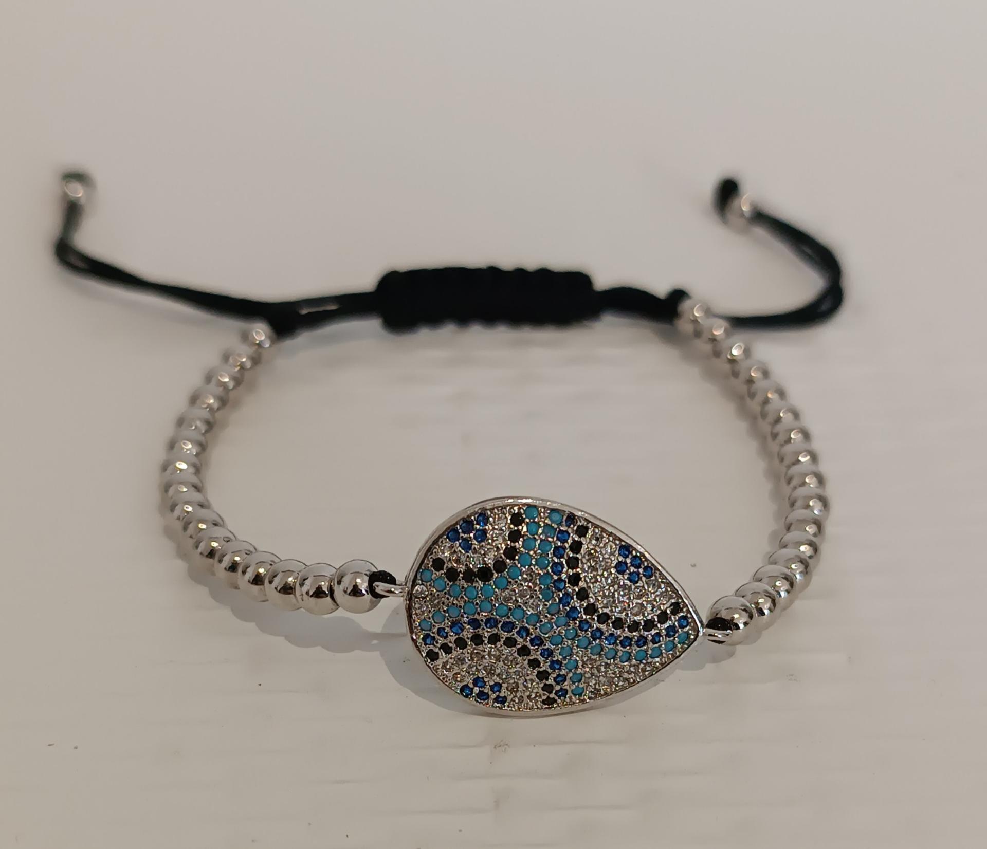 blanc noir bracelet réglable bleu bijou ovale cercle cordon noir oxyde de zirconium fermoir