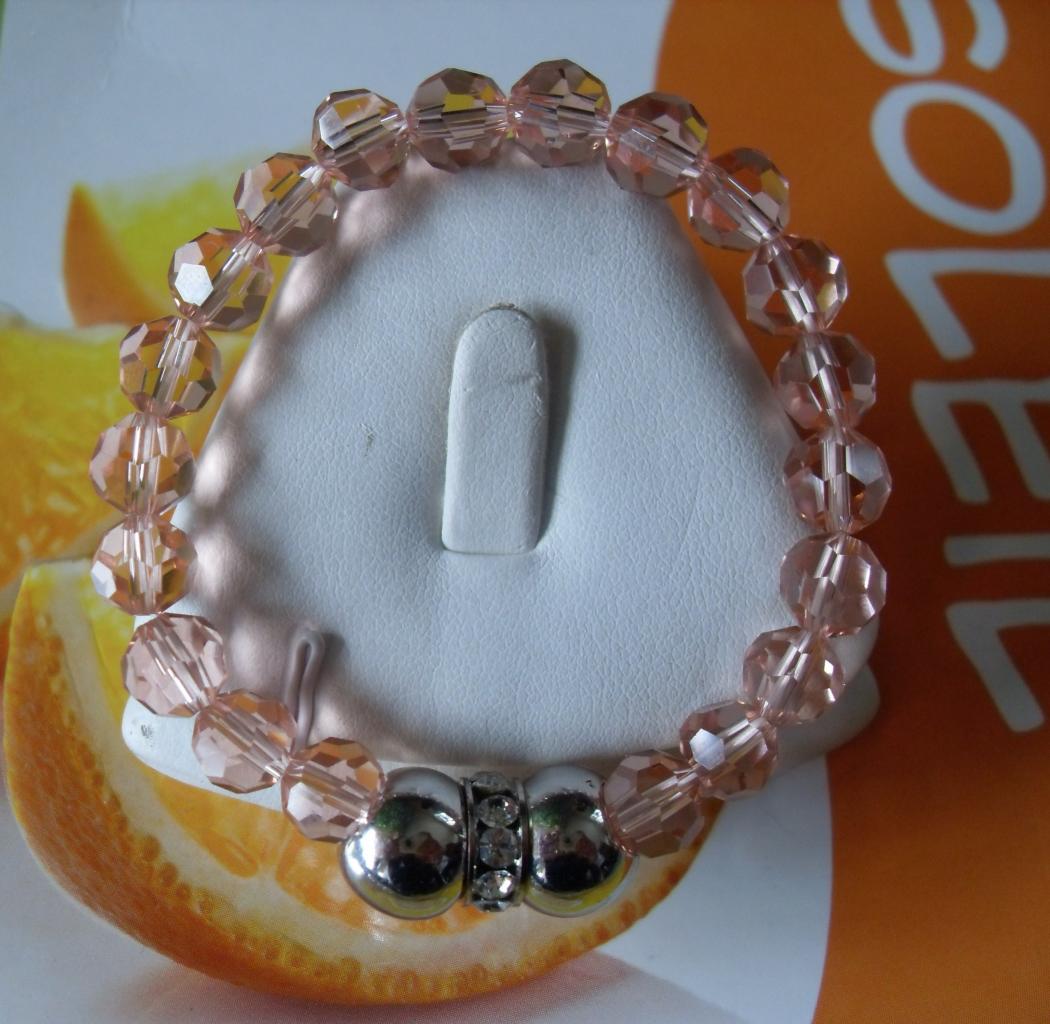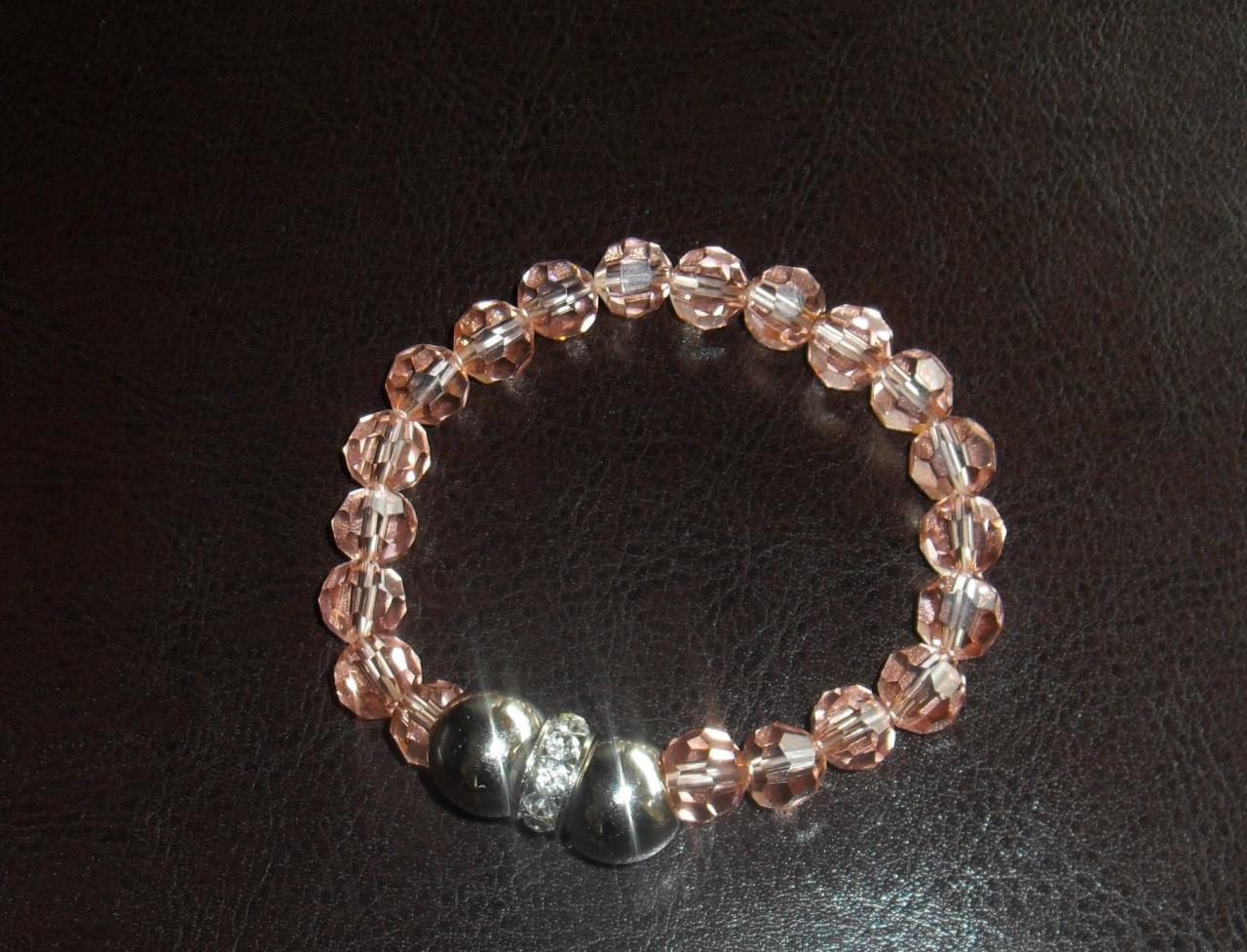 Bracelet cristal rose, perles métal argenté et strass blanc.