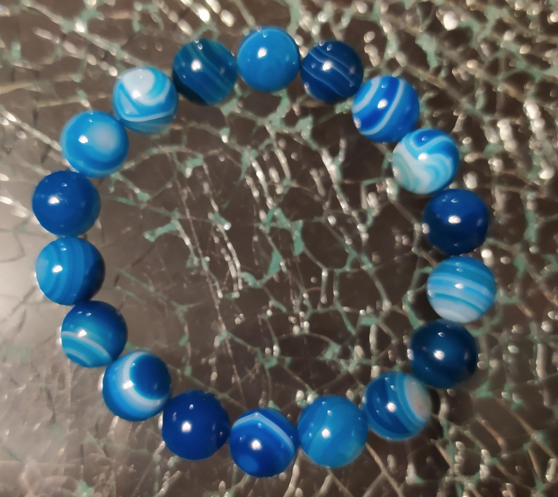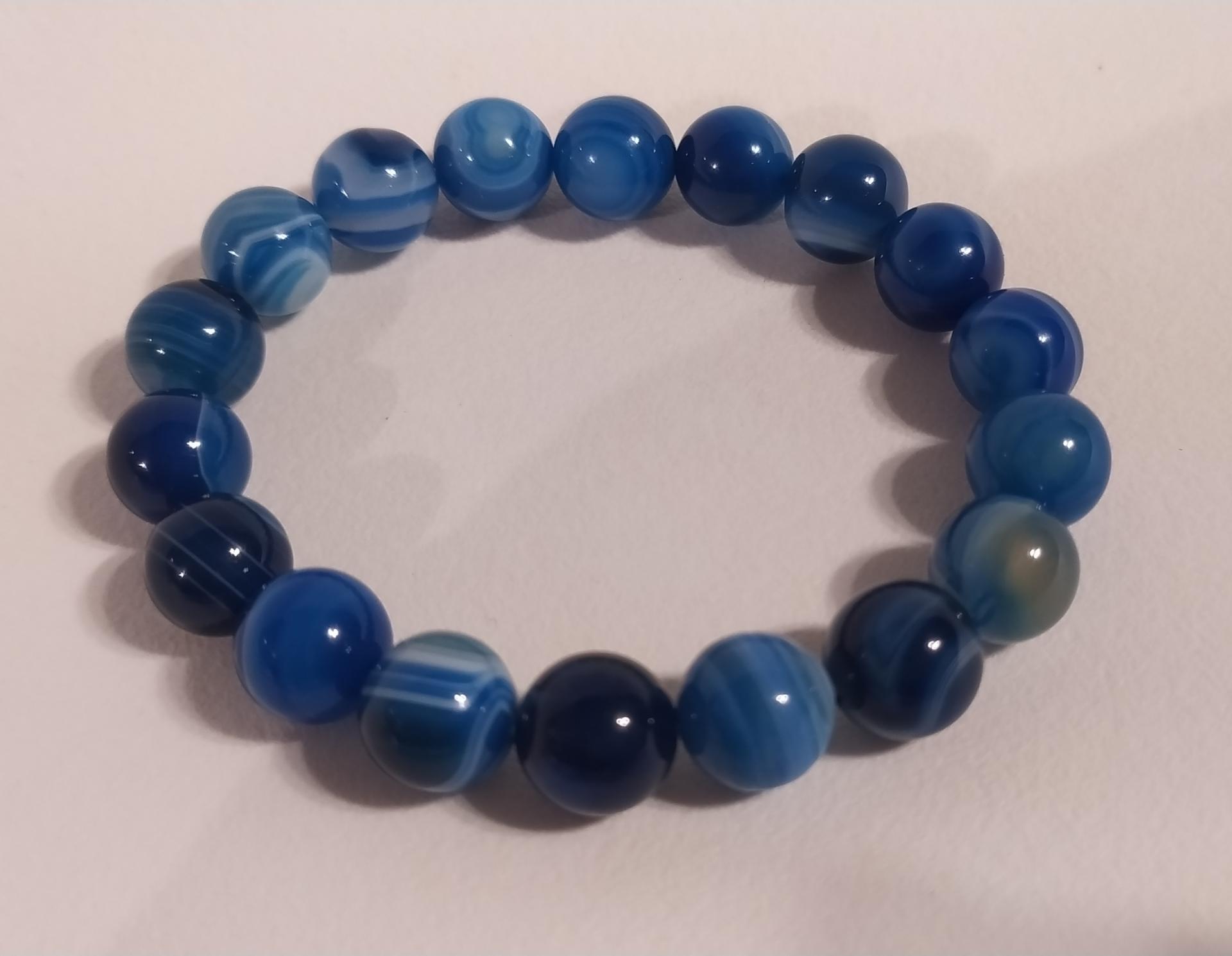 Bracelet élastiqué création artisanale Daphné créations bracelet agates bleues mixte perles naturelles vertu bien-être